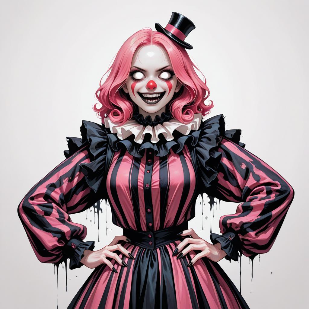 Woman in Scary Clown Costume with Pink Wig