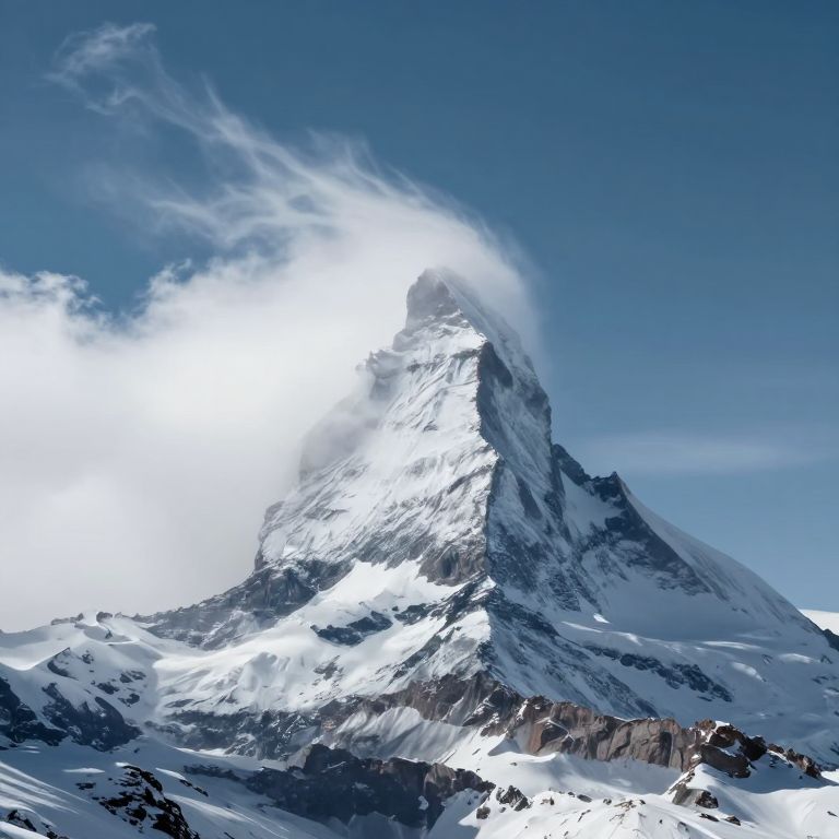 A majestic, snow-capped mountain pierces the sky, its peak shrouded in a dramatic, cloud-like exhalation that evokes the ethereal dreams of its climbers, captured in a high-definition, computer-generated rendering that blends natural beauty with surreal, dreamlike visual effects.