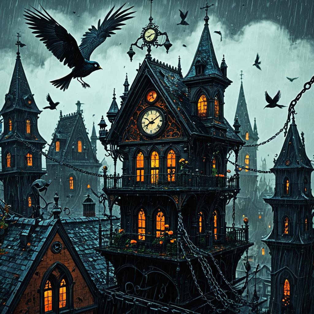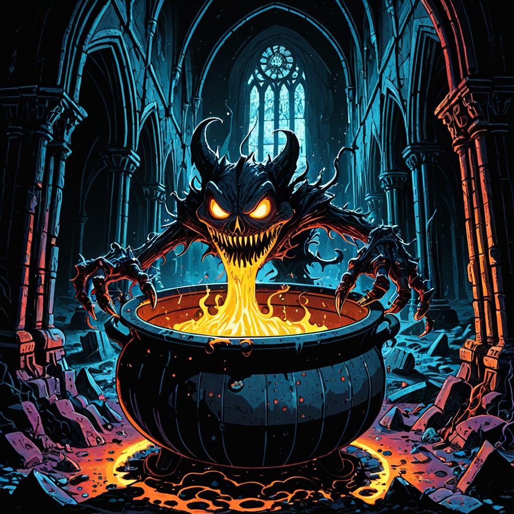 Dark horror cartoon masterpiece in vintage horror pulp, twisted carnival barker with a fragmented porcelain mask and looming skeletal hands, cracked, moonlit fairgrounds with dalmatian-spot shadows, vivid colors, infinite fractals.