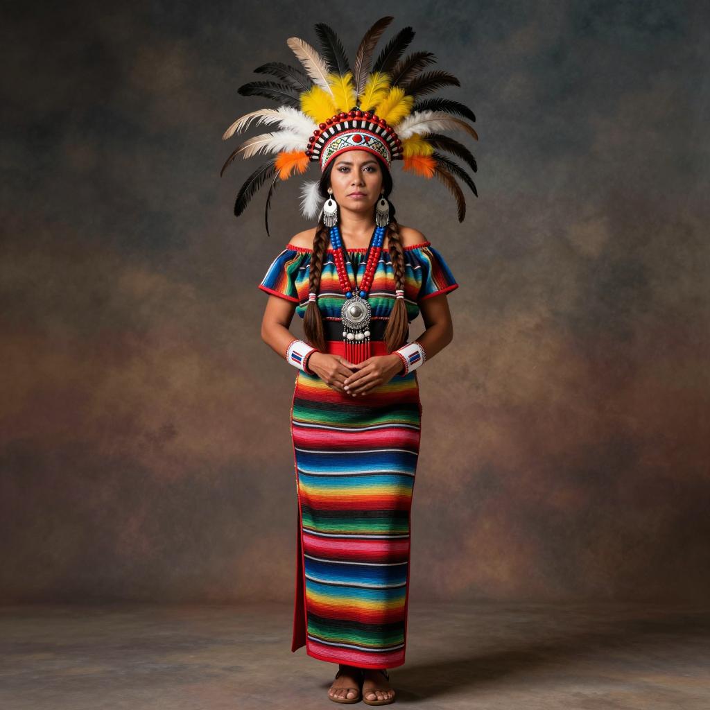 Young Woman in Colorful Indigenous Feathered Costume