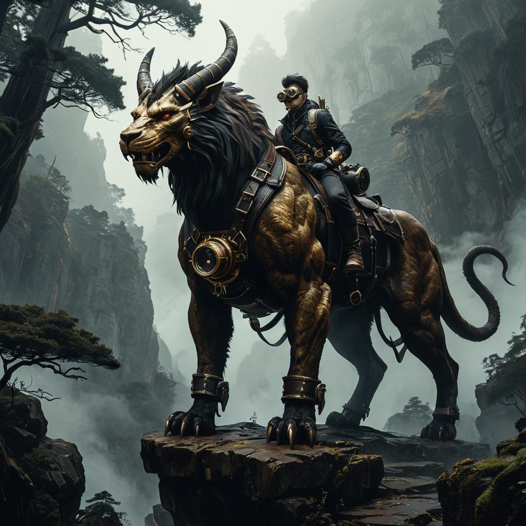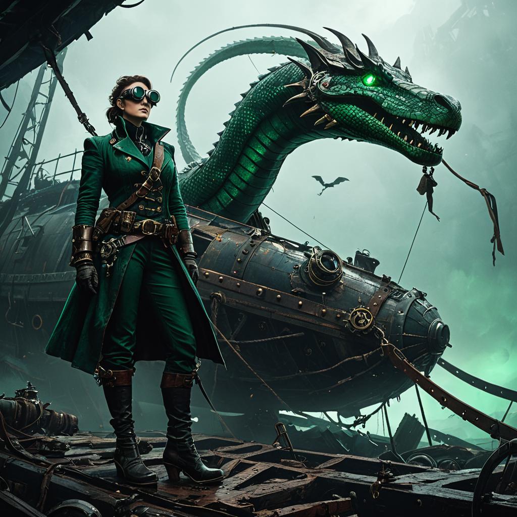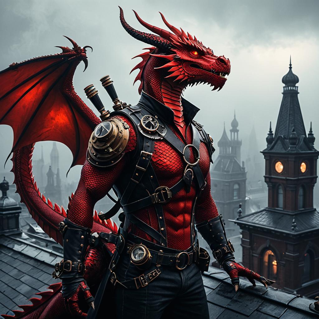 A majestic anthropomorphic bronze dragonborn stands atop a fog-covered ancient lighthouse, wearing a leather harness and steampunk goggles, cinematic chiaroscuro lighting, digital painting, concept art, artstation, matte finish, sharp focus, illustration, by sera kama, Feng Zhu, Anthony Jones
