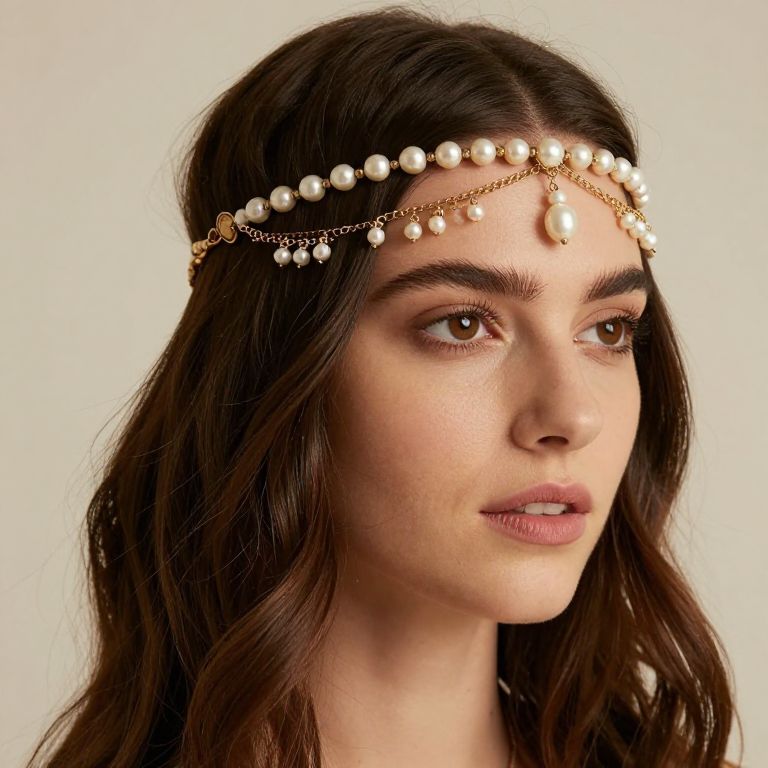 A boho chain headpiece with pearls and some layers bring an instant boho feel