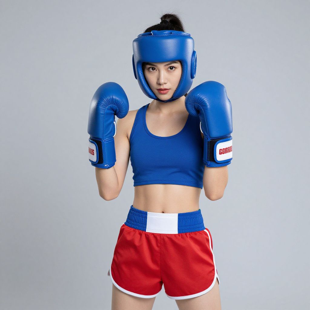 Woman in Red and Blue Boxer Costume