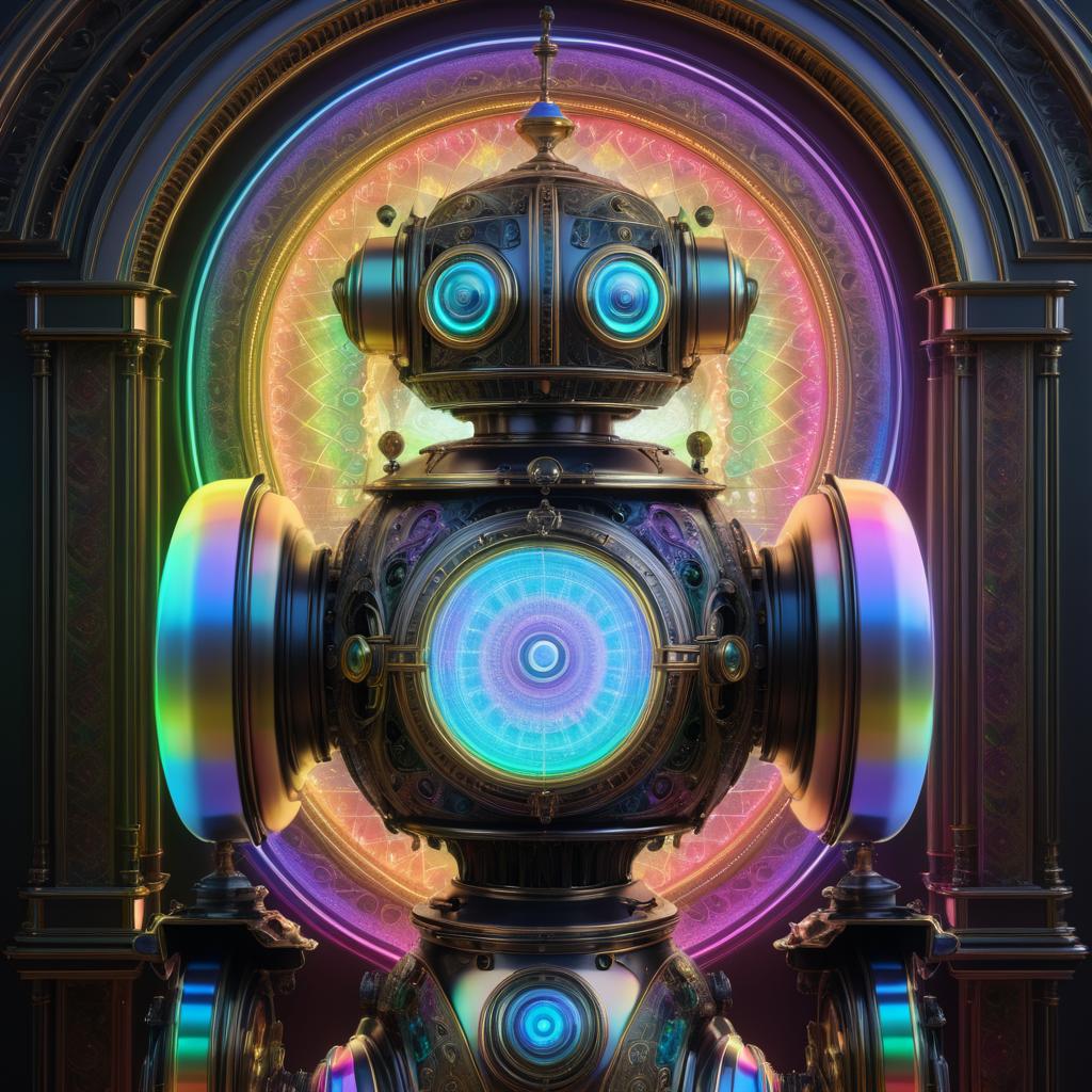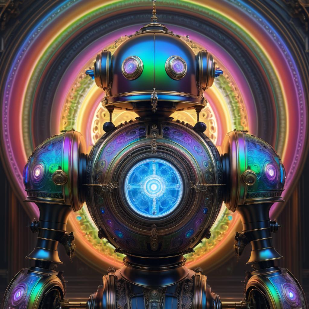 Victorian-Era Steampunk Robot with Rainbow Lighting