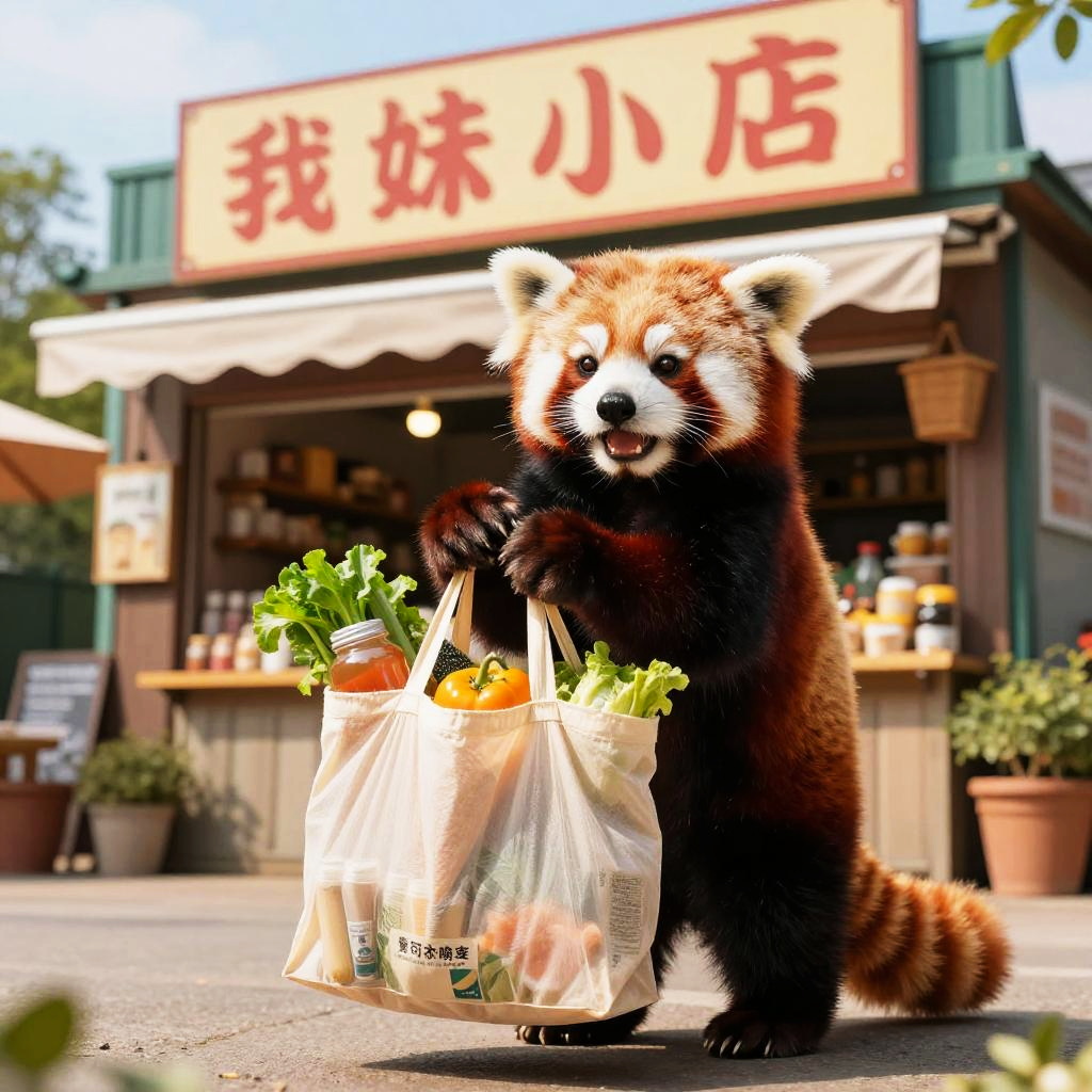 Adorable Red Panda Grocery Shopper