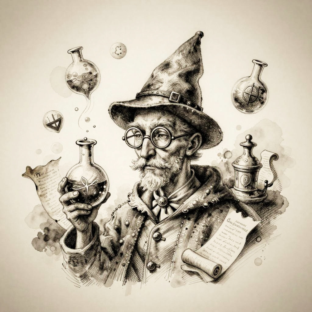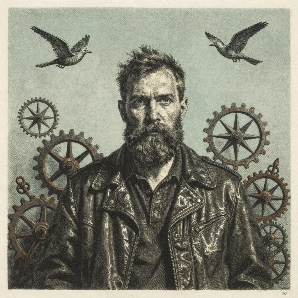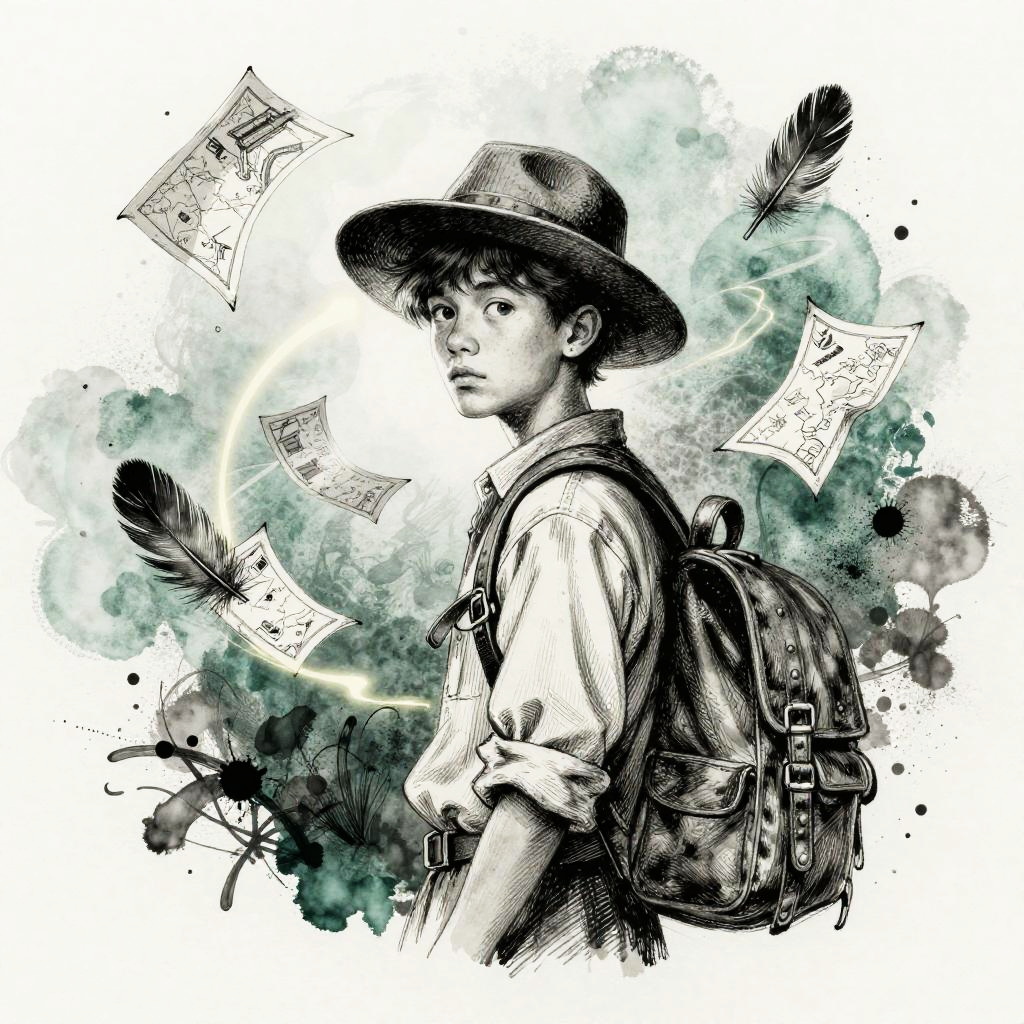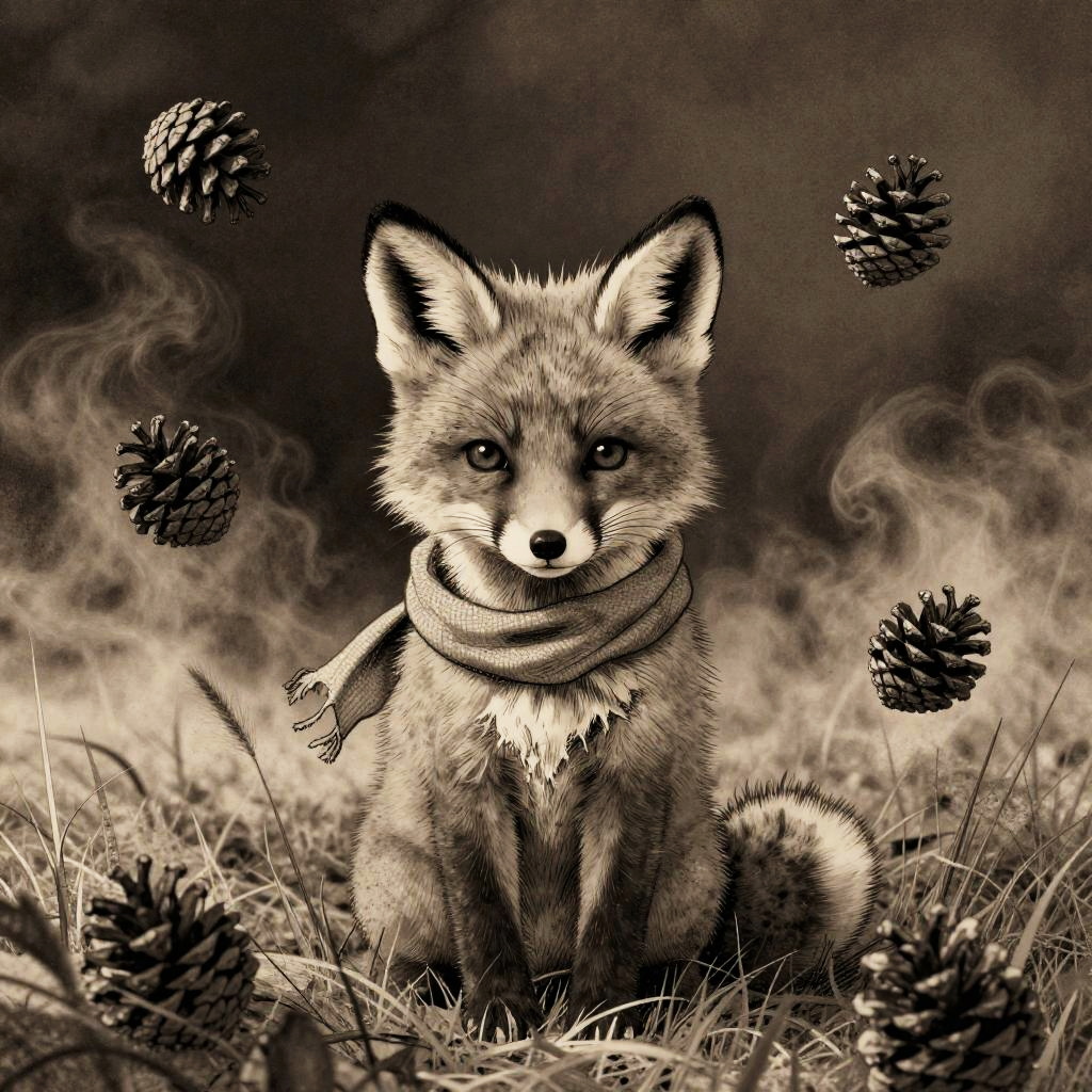 Soft charcoal rendering with visible finger blending on a greenish-teal wash, monochrome linework with subtle halftone grain. Center frame, a pensive dog with floppy ears and a patterned collar holds a quiet, serious gaze. Around them drift floating soap bubbles, scattered autumn leaves, and small garden snails, shaping a quirky, surreal atmosphere. Crosshatching, smudged edges, paper tooth, slight misregistration. Soft diffuse light, calm negative space, high-contrast silhouettes, gentle vignette. Melancholy mood, handmade imperfections, tactile ink, steady composition.