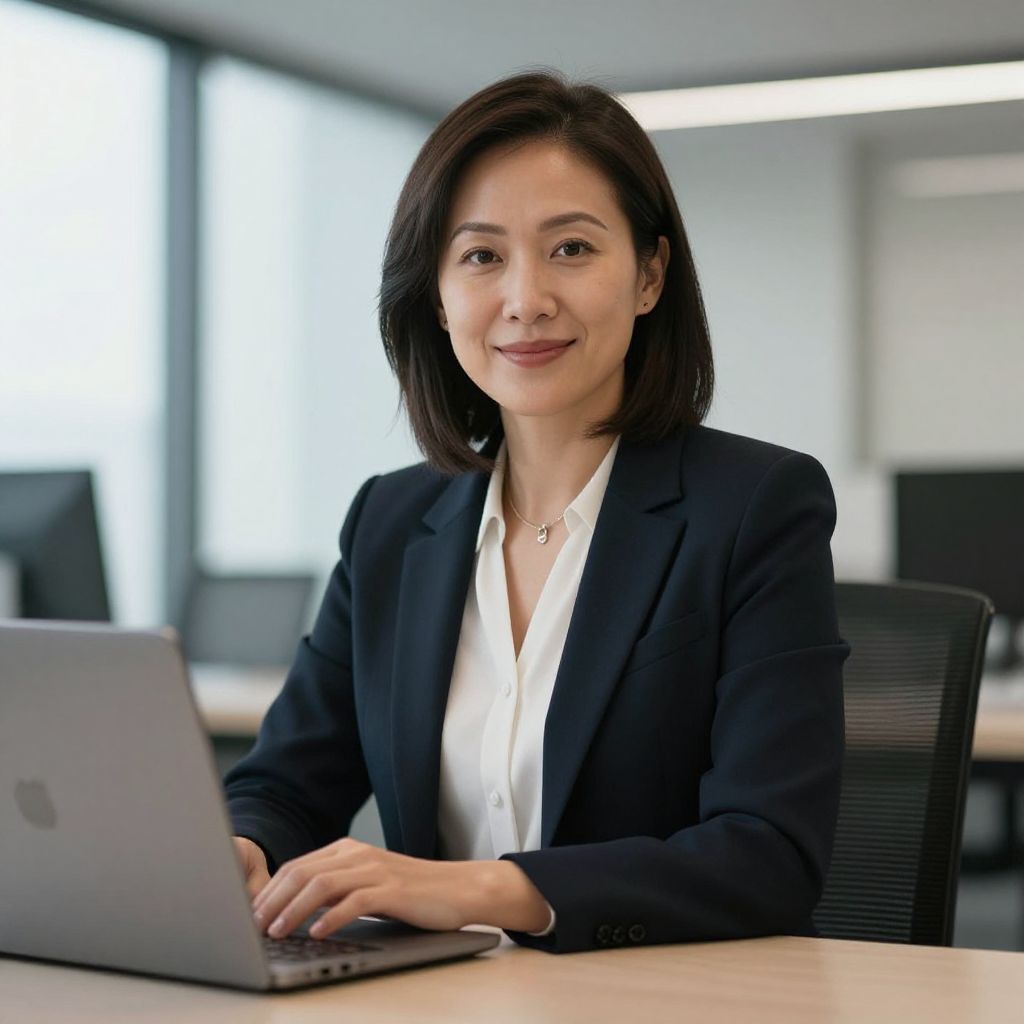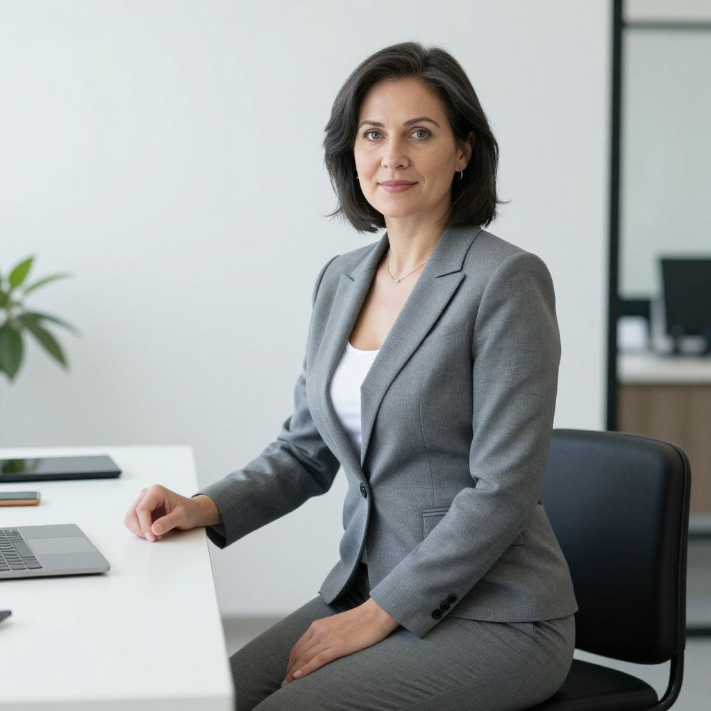 Professional meeting underway featuring three individuals seated around a polished wooden table, with one woman in a black blazer and pearl necklace smiling warmly while pointing towards documents, alongside two men in business attire, one gesturing with his hand raised.