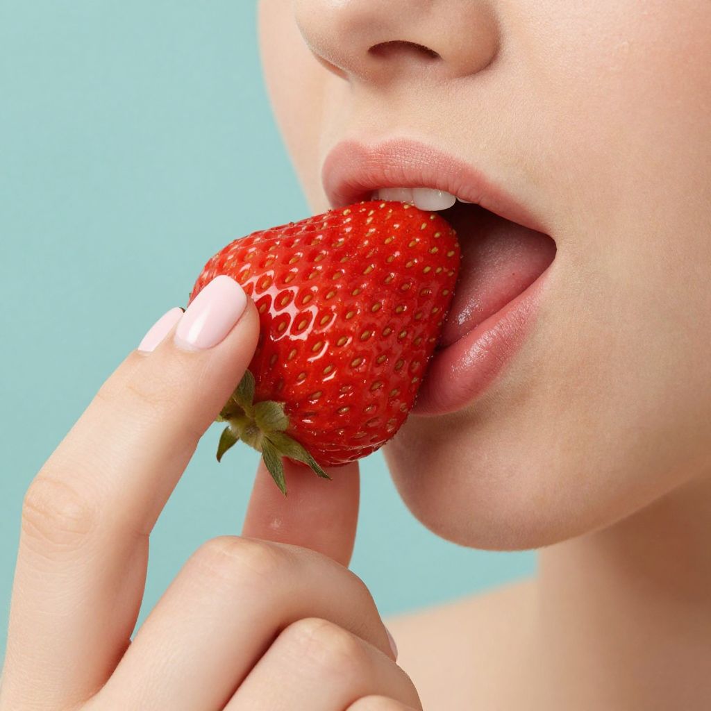 Woman Biting Strawberry Close-Up