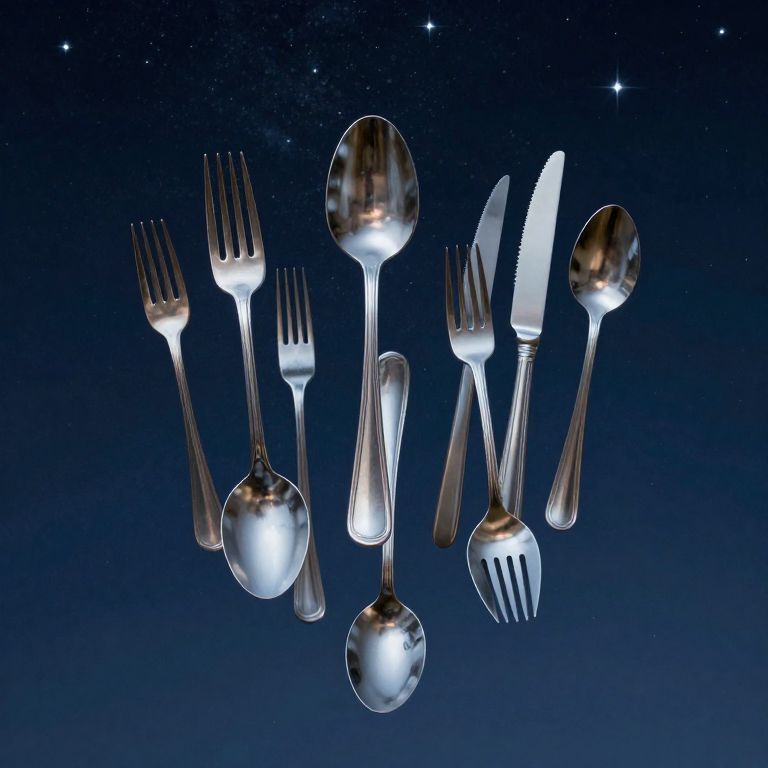 Surreal Metallic Cutlery in Starry Sky