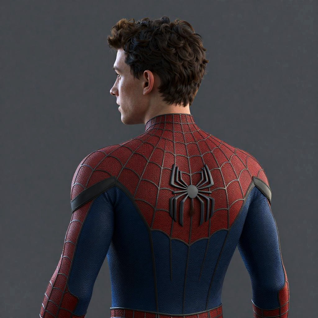 Realistic photo.Body portrait of young man Tom Holland as Spider-Man from behind, by Artgerm, WLOP, octane render, intricate details realistic photo