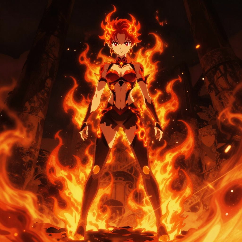 Confident Anime Girl with Fire Powers