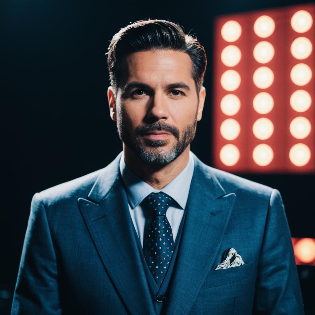 Hyperrealistic Gameshow Host Portrait Pastel Cinematic