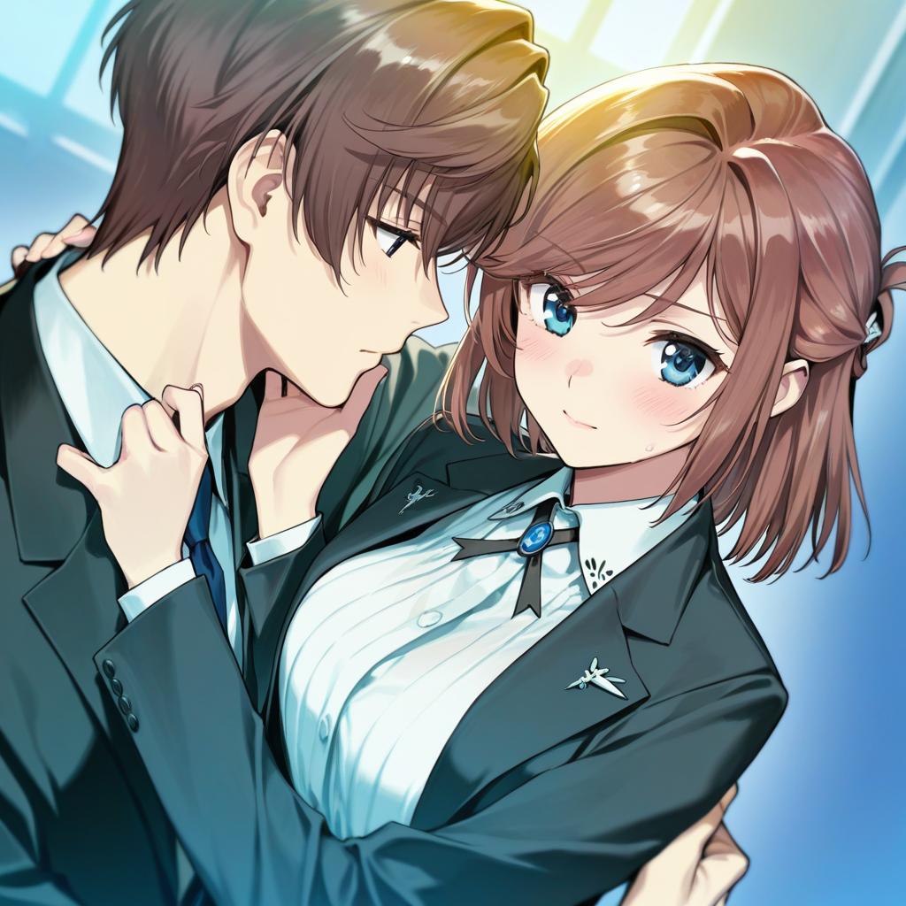 Artem wing (tears of themis), tears of themis, 1boy, blue eyes, brown hair, short hair, white shirt, collared shirt, black jacket, long sleeves, formal, by artist nonco, illustrious