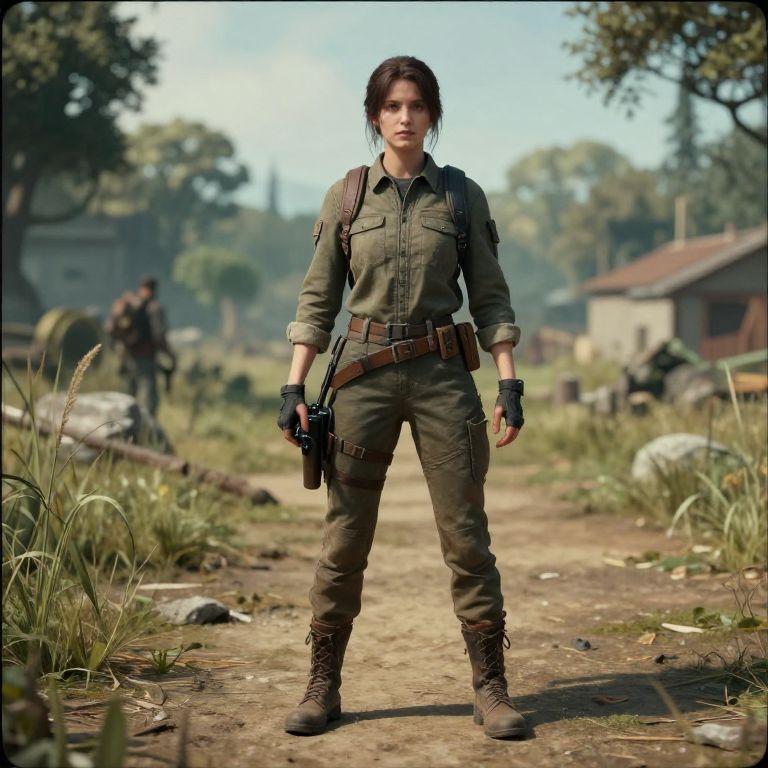"Wide-Angle Camera lucy from game age of origins, full body, shallow focus, 35mm, detailed agfa film fotograph, photorealistic, cinematic, k8, f/1.5,"