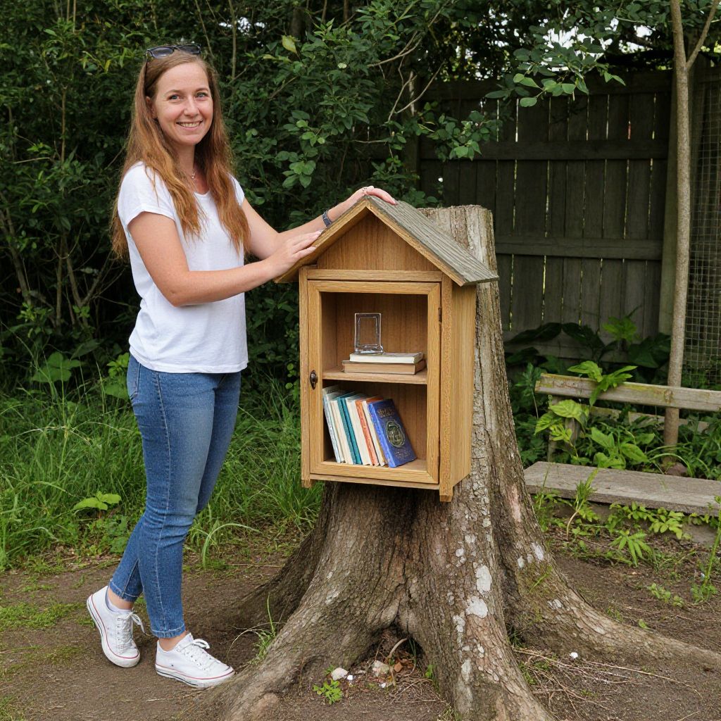 Woman Turns The 110-Year-Old Tree Stump In Her Yard Into A Magical Miniature Free Library