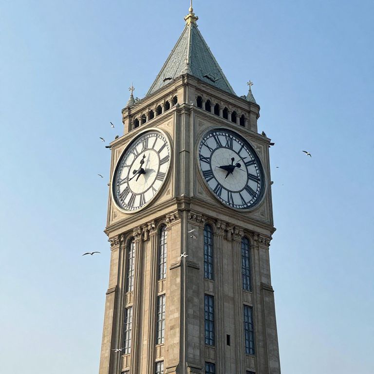 Seaside Clock Tower with Gulls