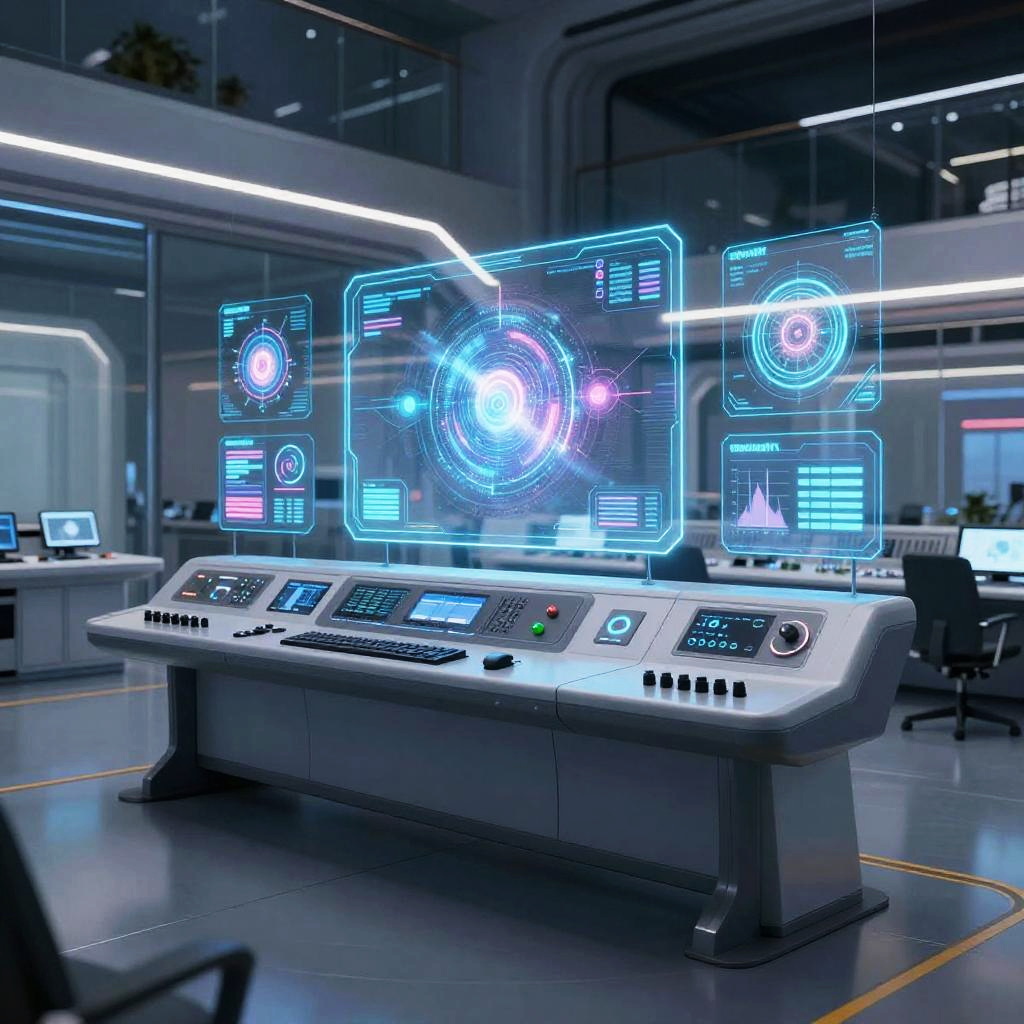 Realistic photo.A futuristic scene featuring a pilot in a flight suit, interacting with glowing holographic interface with floating rectangles, in a high-tech cockpit, highly detailed, cinematic, hyper-realistic, inspired by sci-fi aesthetics realistic photo
