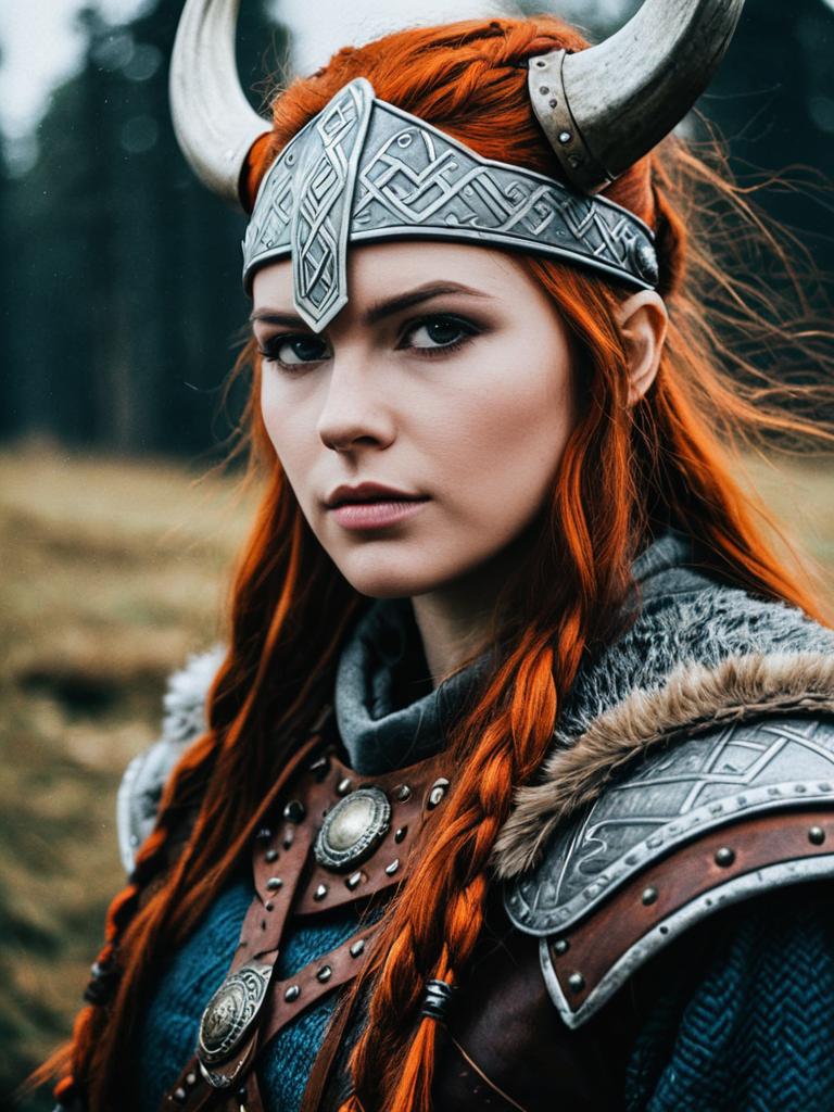 Woman in Viking Costume, editorial fantasy cosplay portrait, cinematic realism