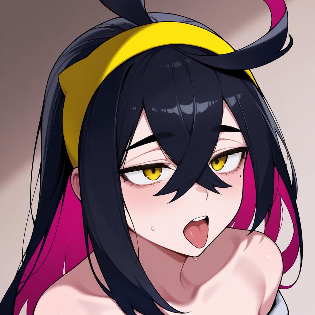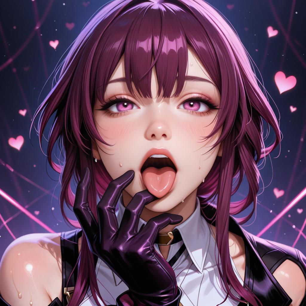 Swf, SFW, kochou_shinobu,1girl,butterfly hair ornament,hair ornament,choker,purple hair,purple eyes,open mouth,multicolored hair,black choker,tongue