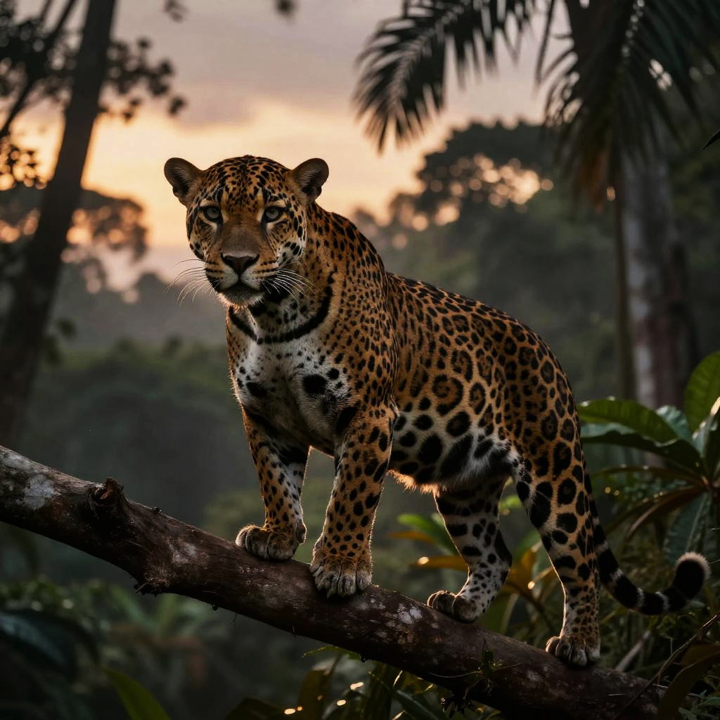 Sleek black panther lounging poised on dense jungle shadows filtered by dappled sunlight, deep expressive eyes, moody charcoal and ink artwork, dramatic horizon light, ultra-detailed textures, cinematic portrait framing, atmospheric depth with soft mist, subtle color grading, rim highlights, environmental storytelling, lifelike presence, high dynamic range, crisp silhouette, balanced composition, fine surface detail, immersive mood
