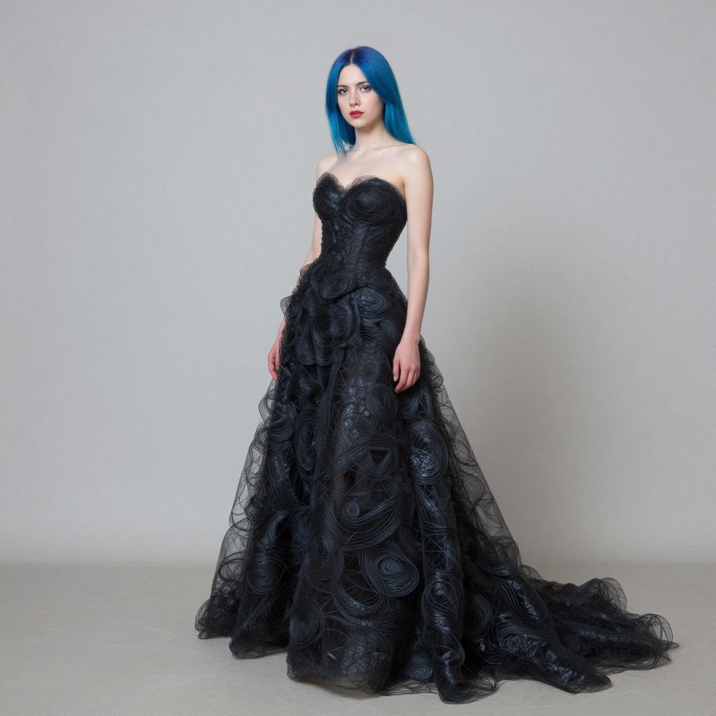 Intricate highly detailed womans full body portrait, blue hair, black gown high resolution uhd hyper realistic hyperdetailed 8 k pastel paint pour by peter mohrbacher