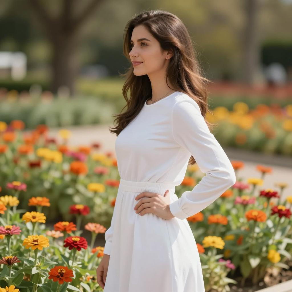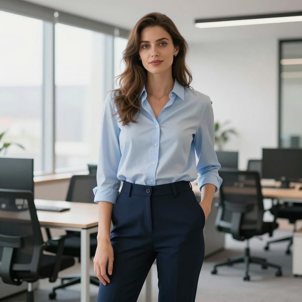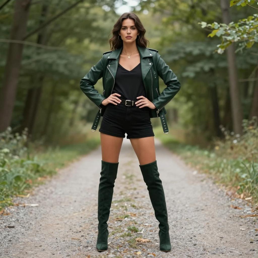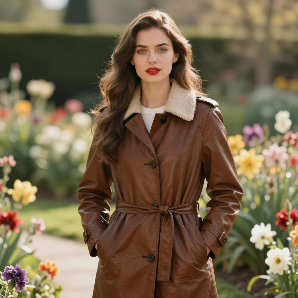 Umbrella plazo suit, photorealistic, young woman, long wavy brown hair, green floral blazer, white shirt, holding transparent umbrella, standing on sidewalk, greenery background, daytime, confident expression, casual style, medium shot, soft lighting, slight bokeh effect, urban park setting, realistic ures, fashion photography, natural light