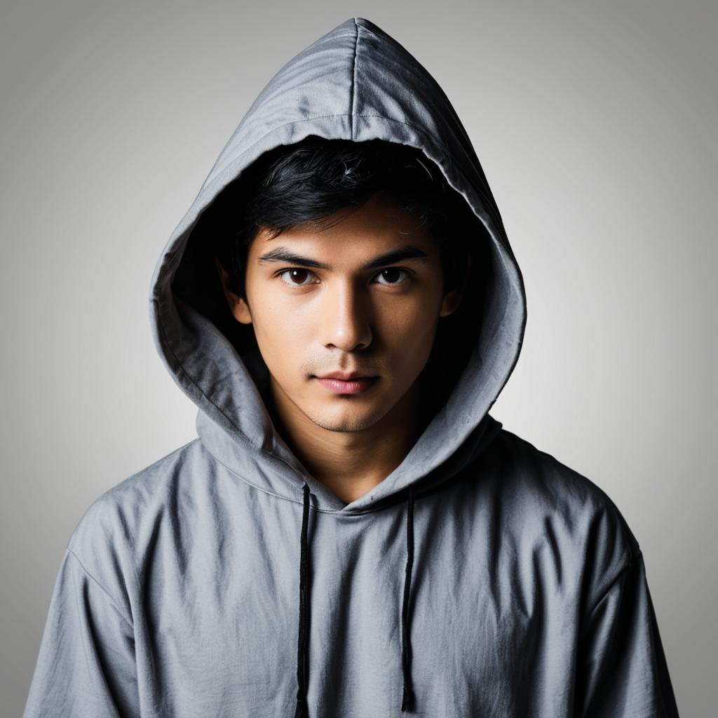 Fire taco bell sauce packet, 1boy, male focus, hood, blurry, blurry background, solo, black hair, looking at viewer, upper body, hood up, realistic
