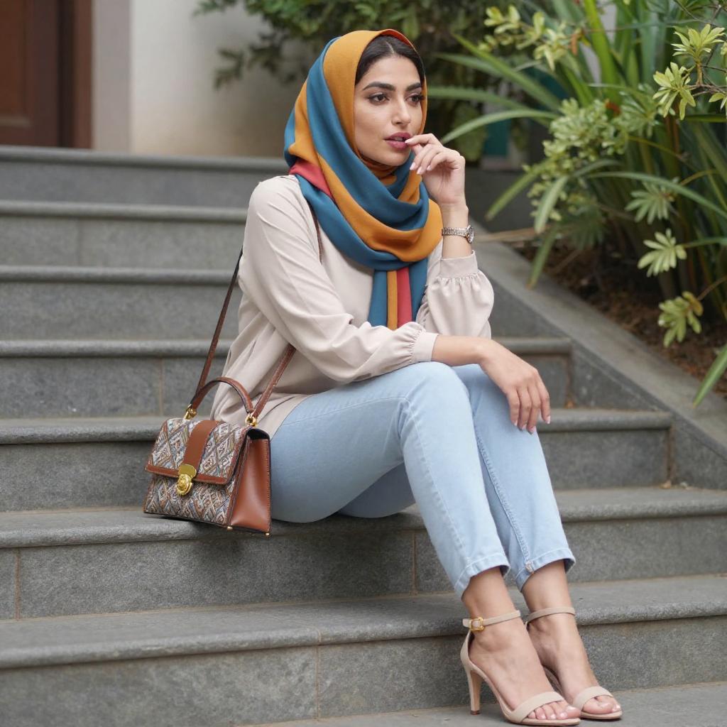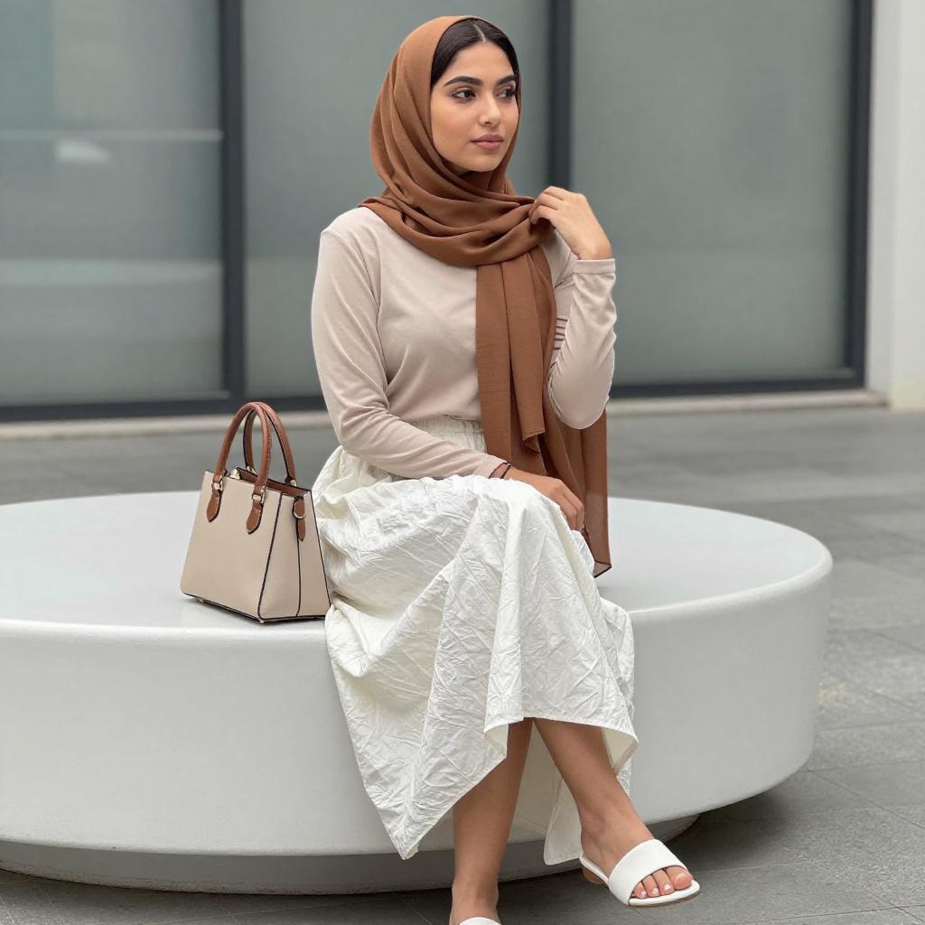 Stylish Woman in Beige Hijab Outdoors