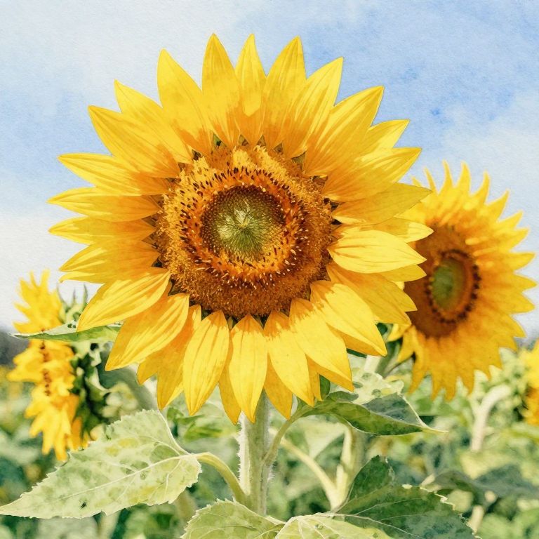 Sunflowers Large Watercolor Painting in Yellow, Green and Blue