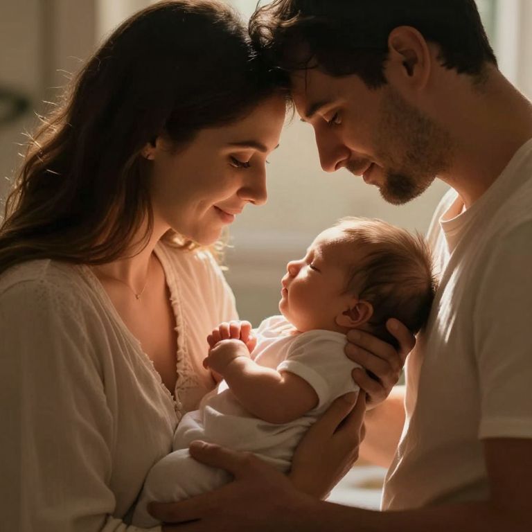 In a sacred embrace of love and devotion, the tender bond between mother, father, and infant radiates an ethereal serenity, symbolizing the timeless innocence of new life and the enduring promise of hope.