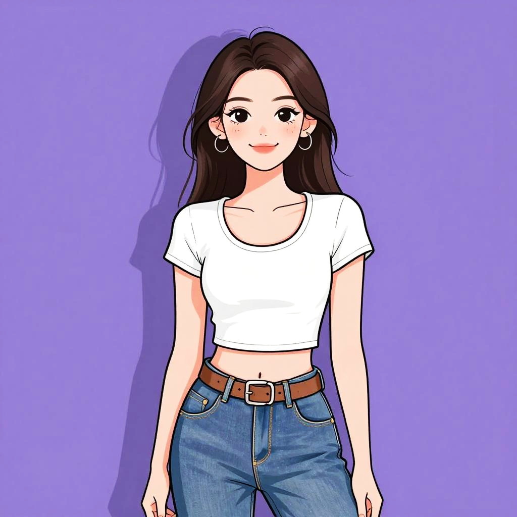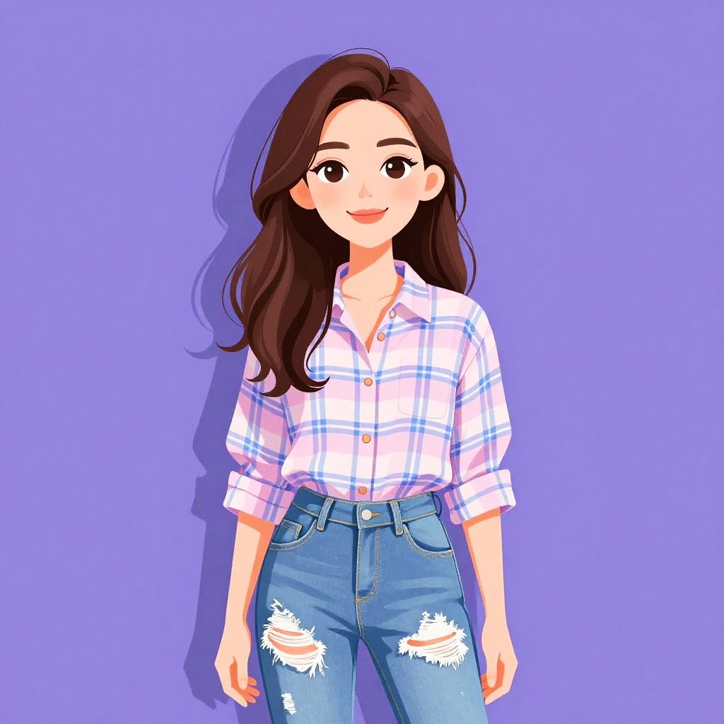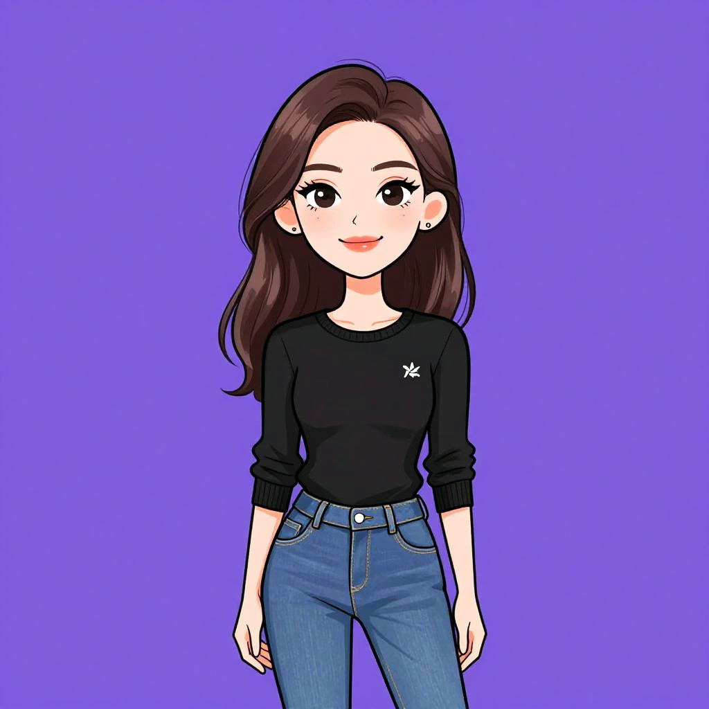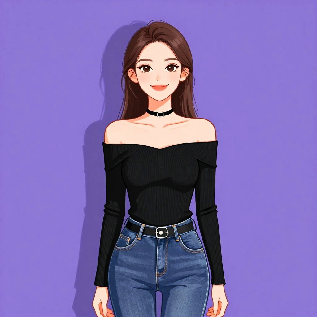 Woman with pretty face and pretty hair. smiling Woman, casual streetwear, burgundy textured knit sweater with a scoop neck and long sleeves, black distressed skinny jeans with horizontal rips at the knees, white background. --sref 1467