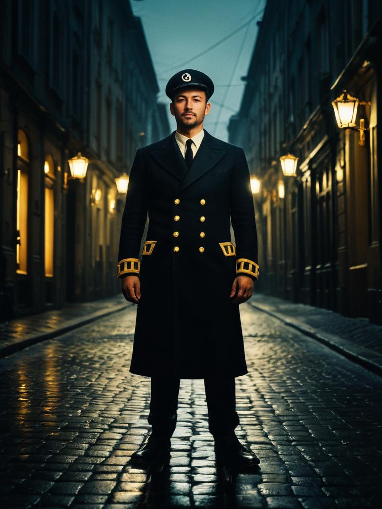 Man in Tintin Costume, photorealistic outdoor portrait in European street --sref 1391