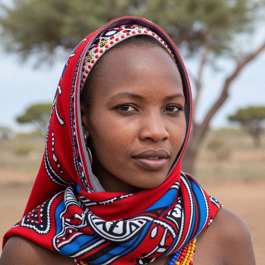 "Traditional Xhosa, a close up of a woman wearing a headdress and a scarf"
