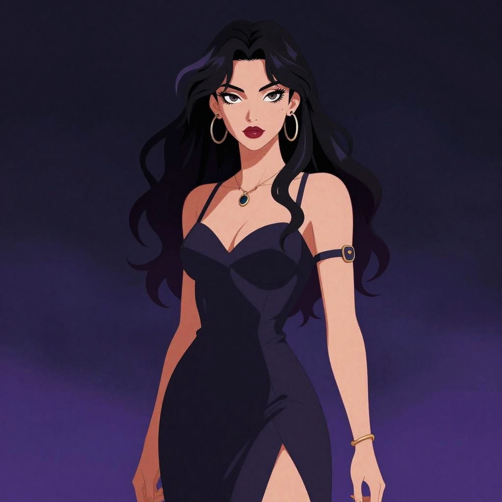 Woman illustration. Cartoon, erotic vibe. Fusion of styles Pre-Raphaelite style and Cyberpunk style