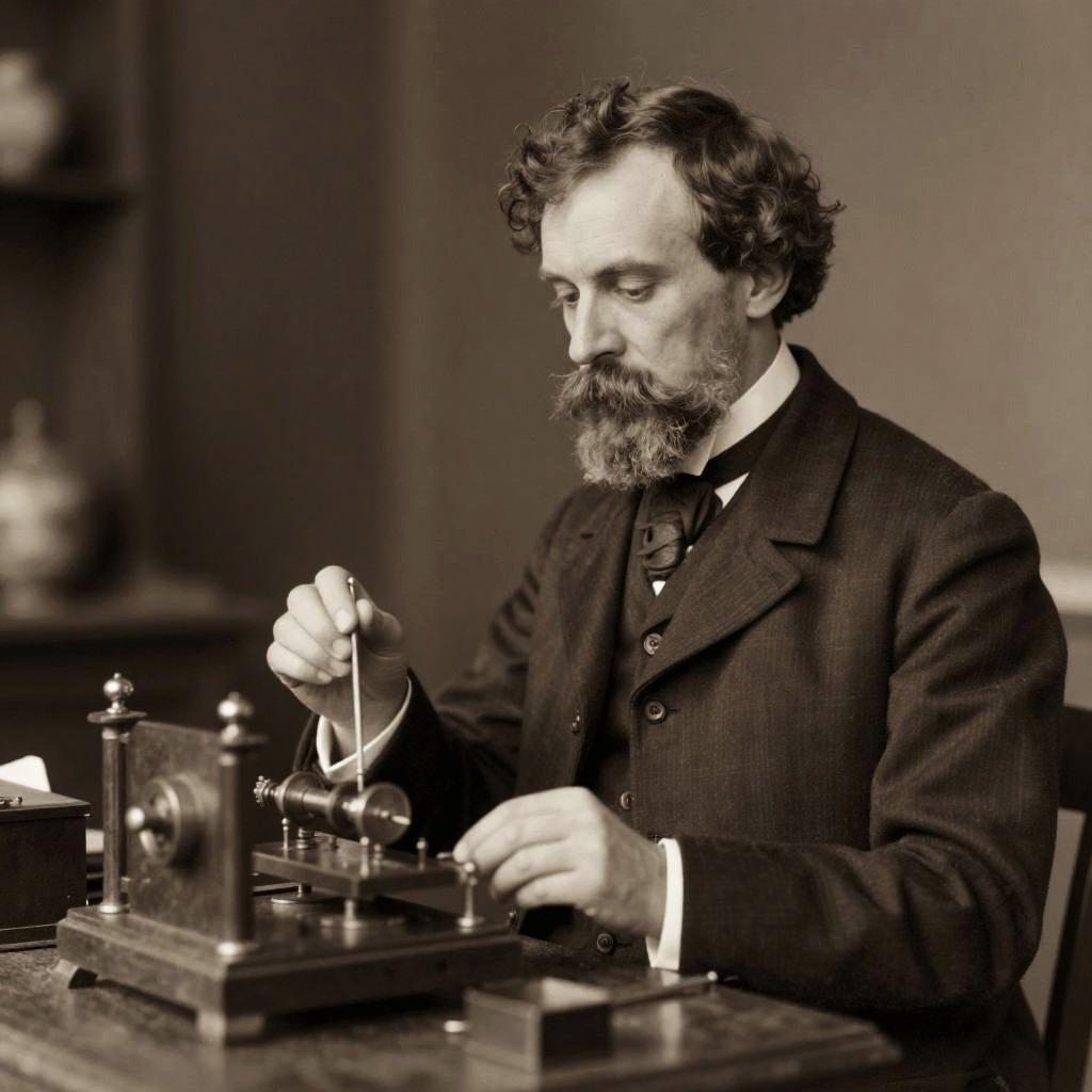 AI vintage photo depicting an old-fashioned sepia-toned portrait of a Victorian-era scientist working with early computing devices, intricate details and soft lighting enhancing the nostalgic atmosphere.