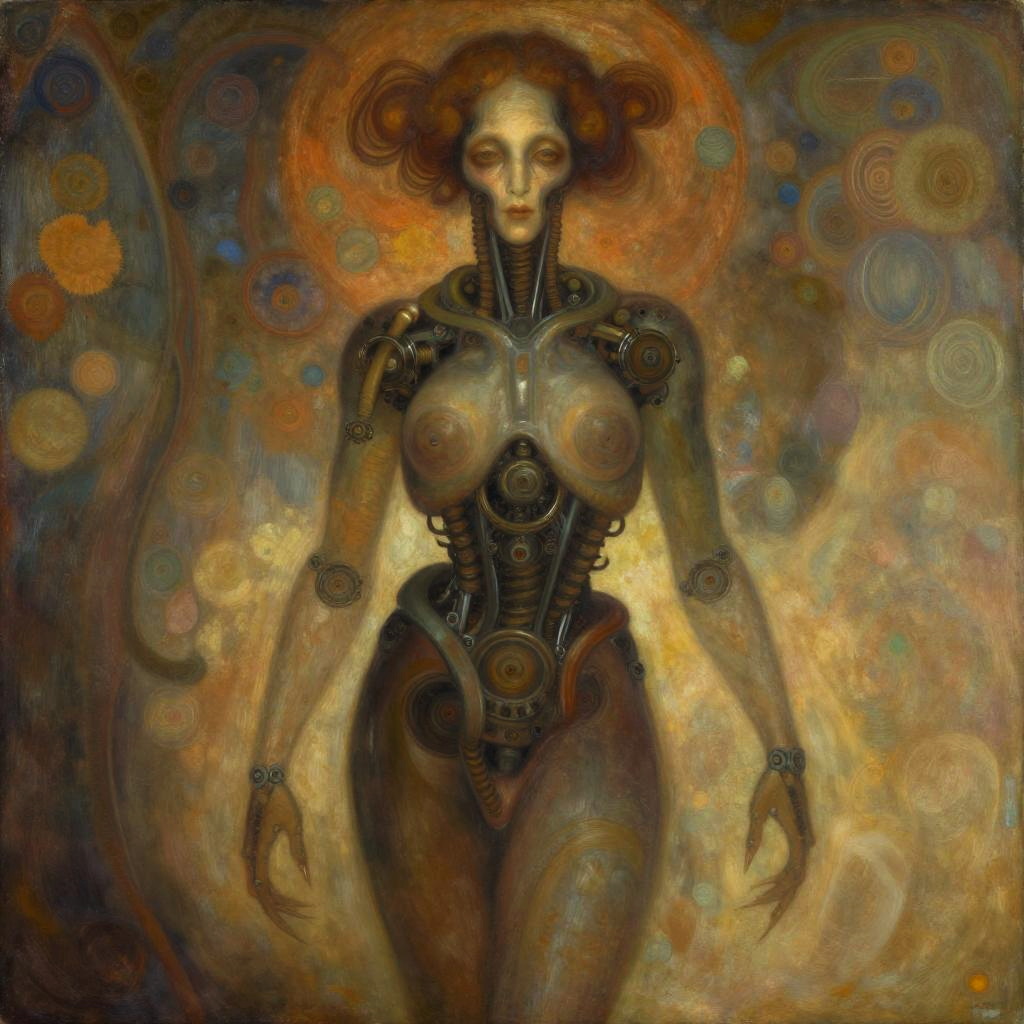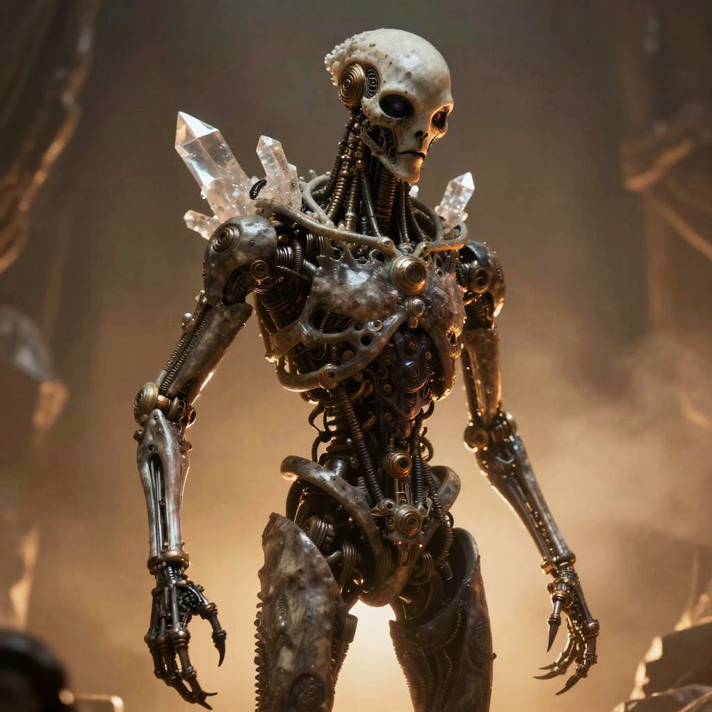 Surreal Mechanical Character in Warm Tones