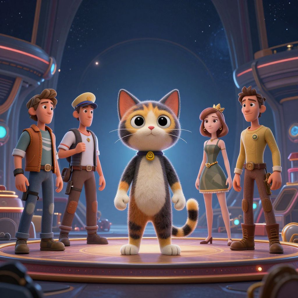 A space cat from a musical sci - fi space opera, animated film, volumetric lighting, octane render by stanley artgerm lau, greg rutkowski, thomas kindkade, alphonse mucha, loish, norman rockwel,
