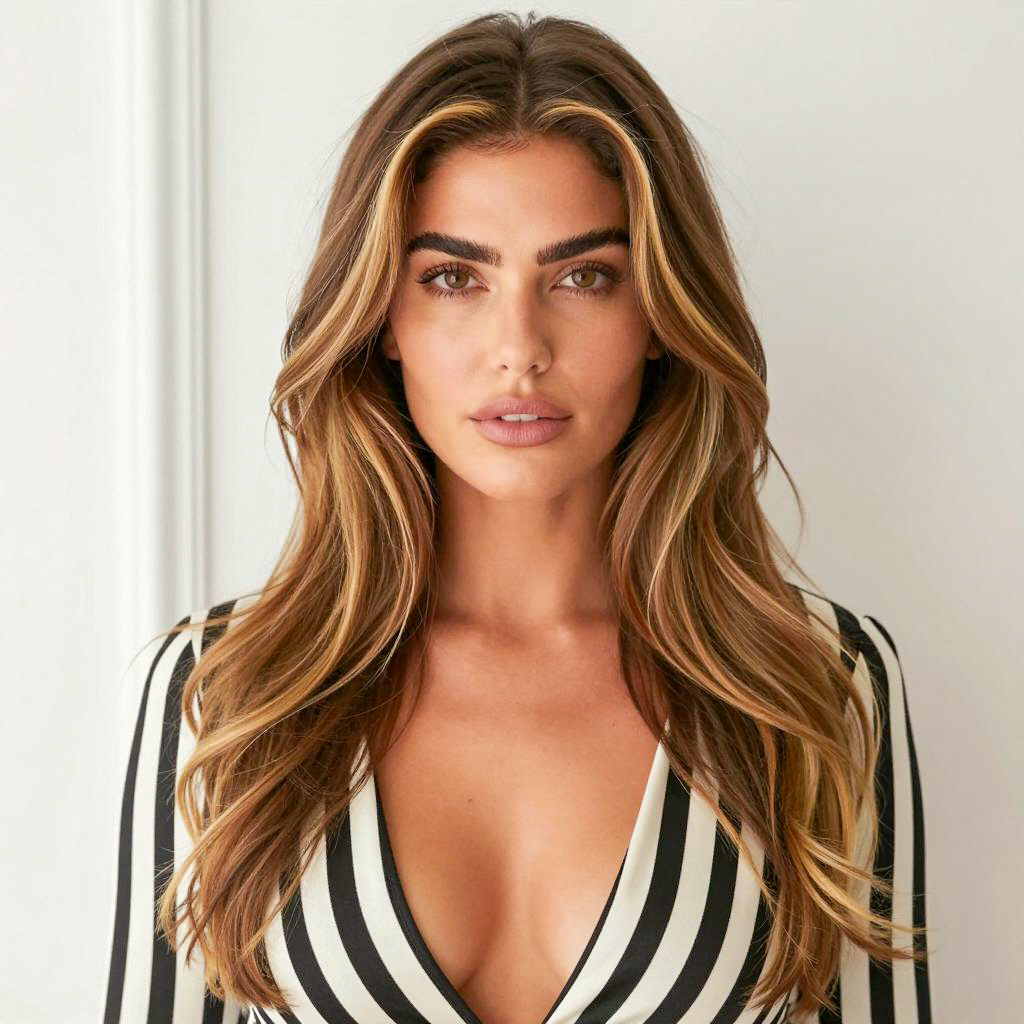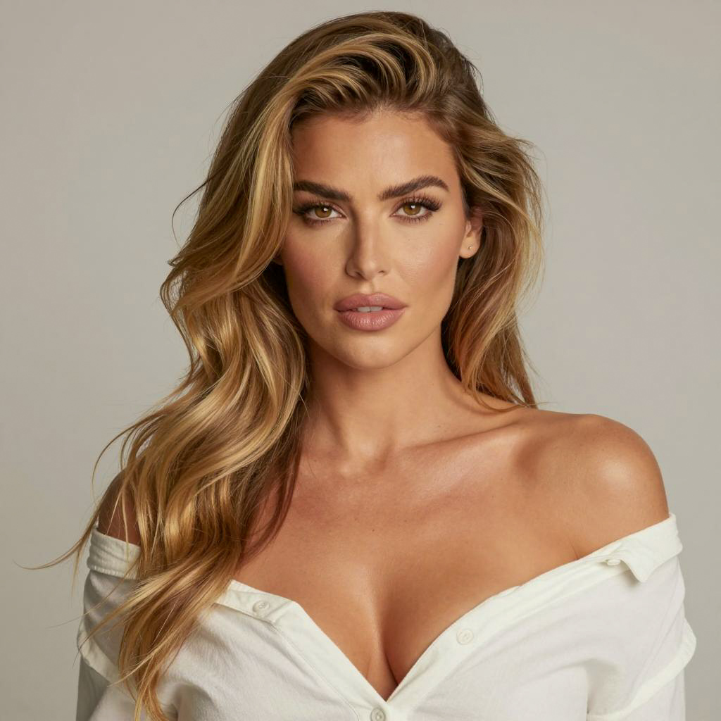 Elegant Woman Posed on White Couch