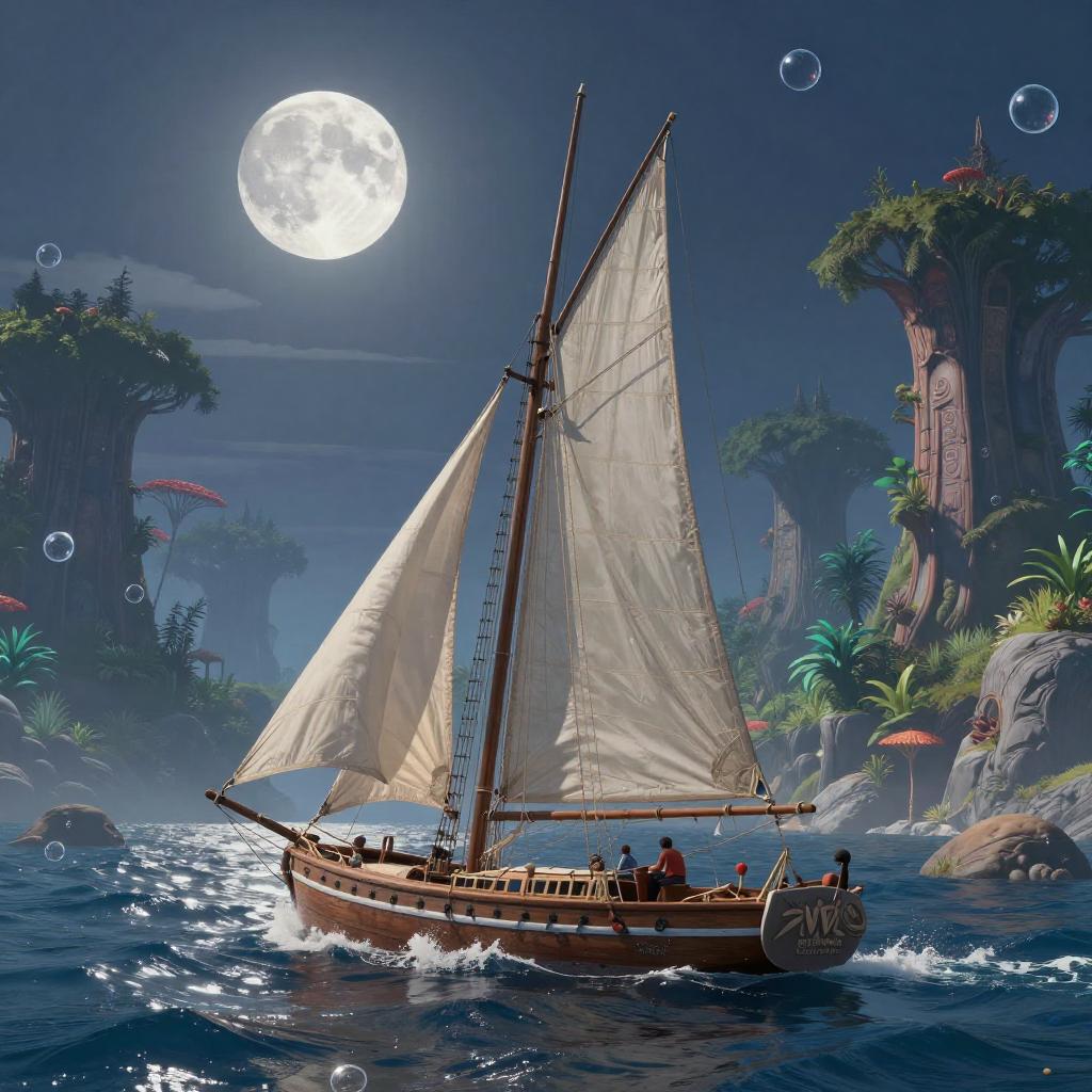 Scenecore Moonlit Sailboat Fantasy Landscape
