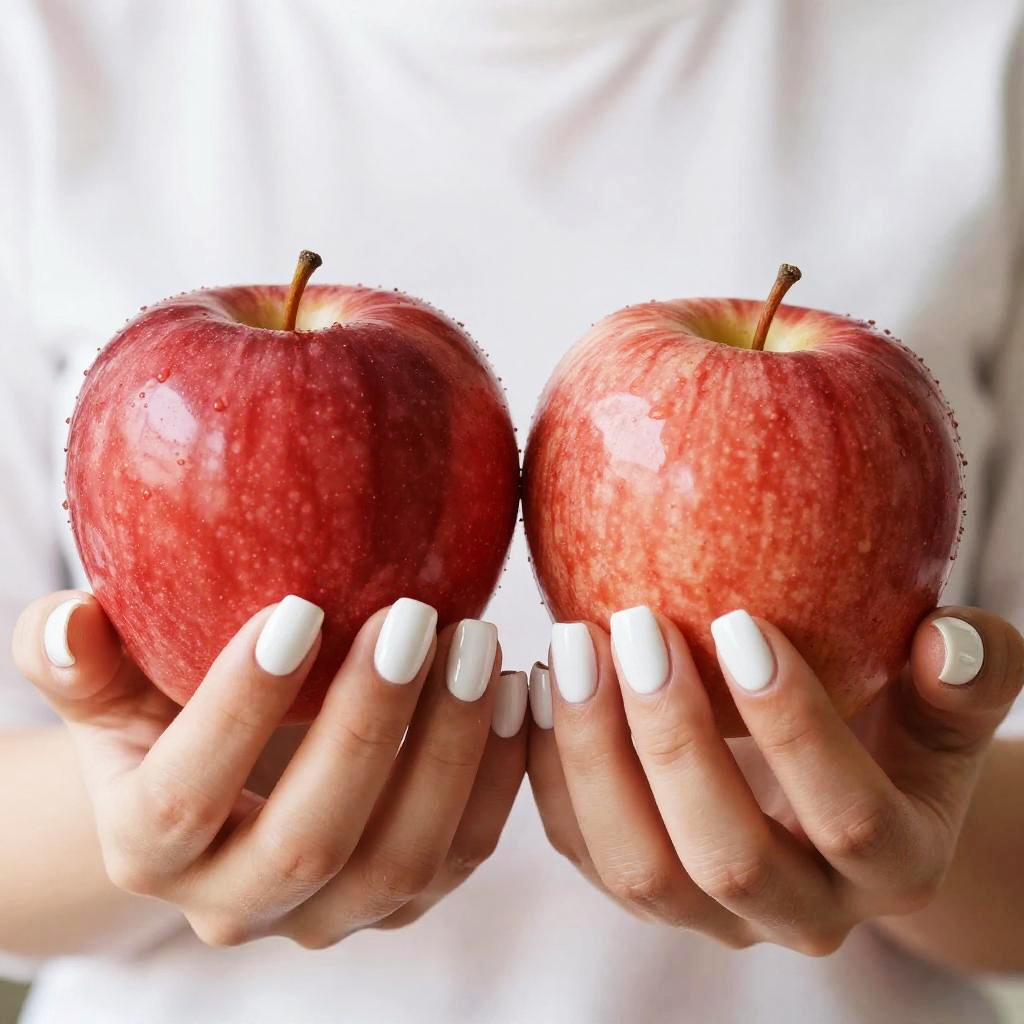 Glossy Red Apples in Manicured Hands