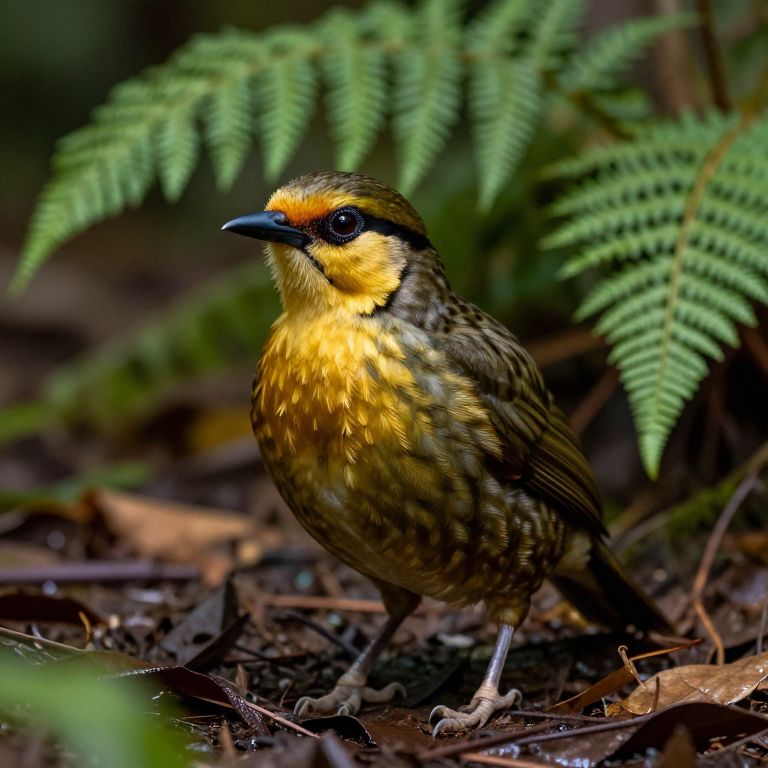 Satin stylish photo of Kiwi - the bird - NOT Kiwifruit, photorealistic, 50mm lens, background is forest floor with ferns,