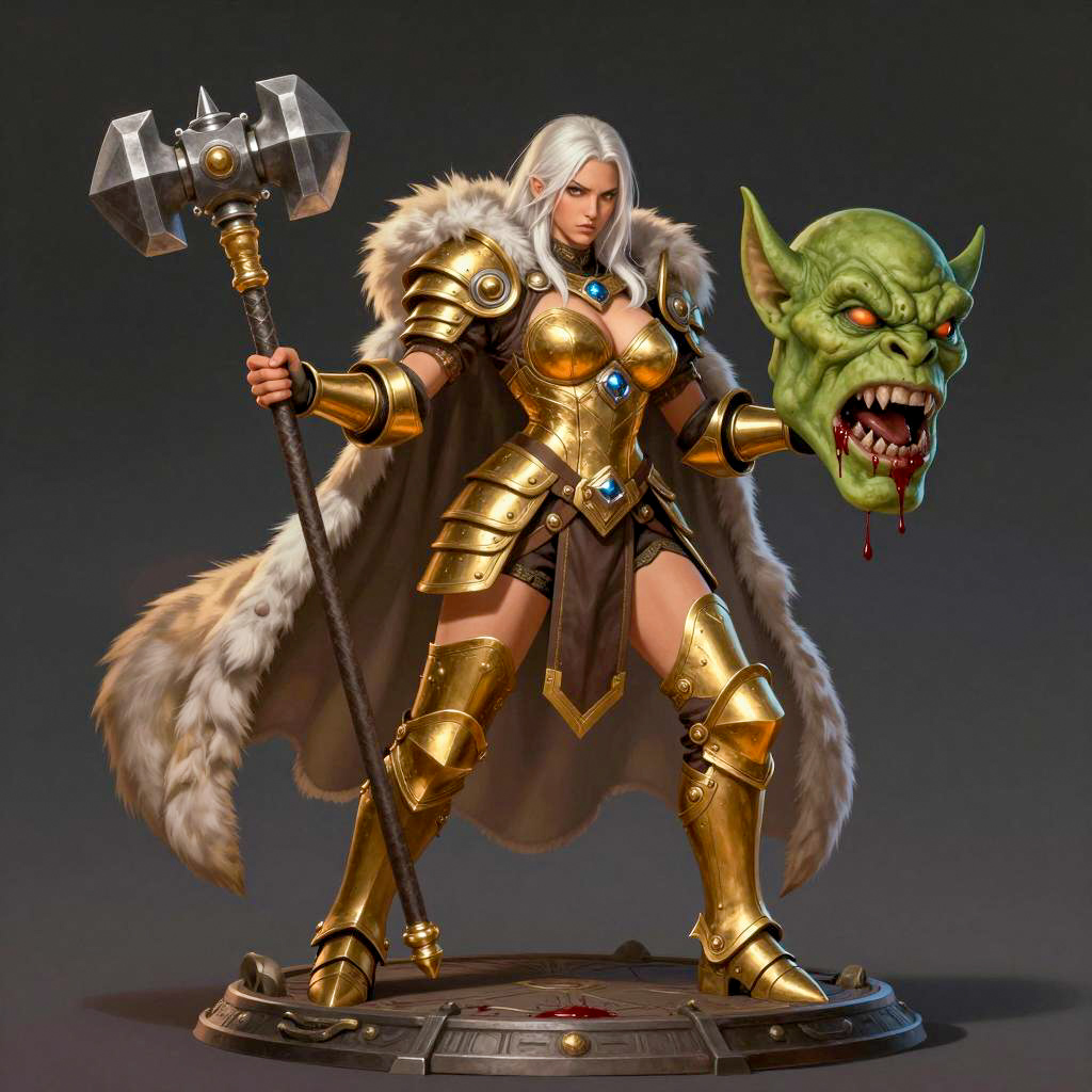 Fantasy Female Warrior in Red Armor with Spear