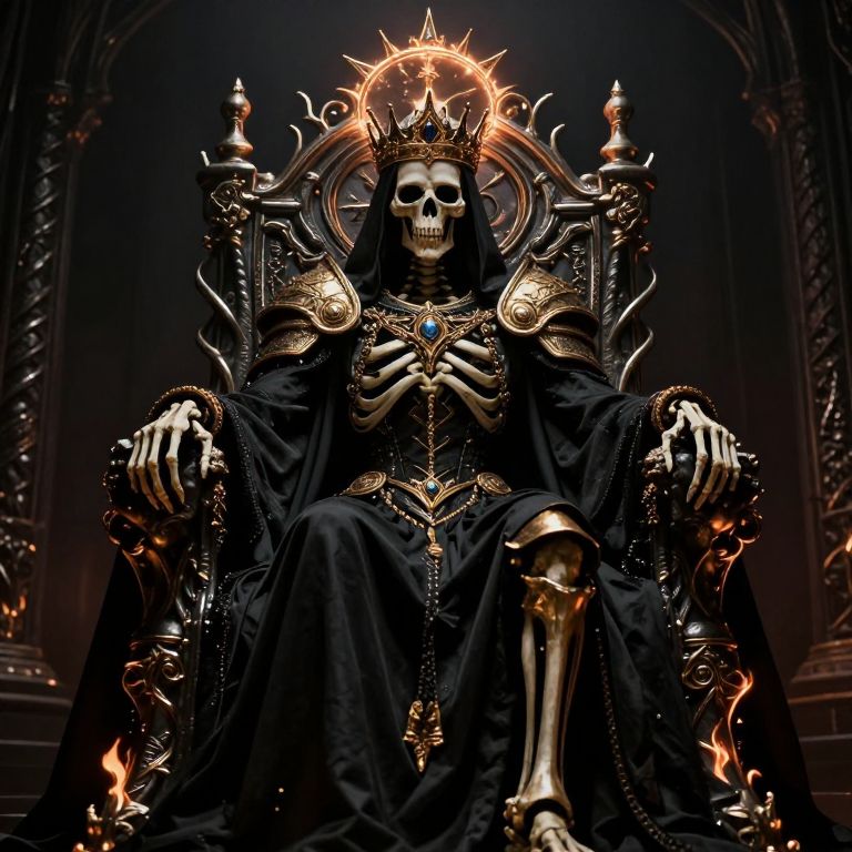 A man in the form of a greek sculpture with a mask in the form of a skull, dressed in a beautiful red cloak, stands in the pose of a super hero on a golden stone. baroque element. intricate artwork by artstation. halo. octane render, cinematic, hyper realism, octane render, 8k, depth of field, bokeh. iridescent accents. vibrant. teal and gold and red colour scheme