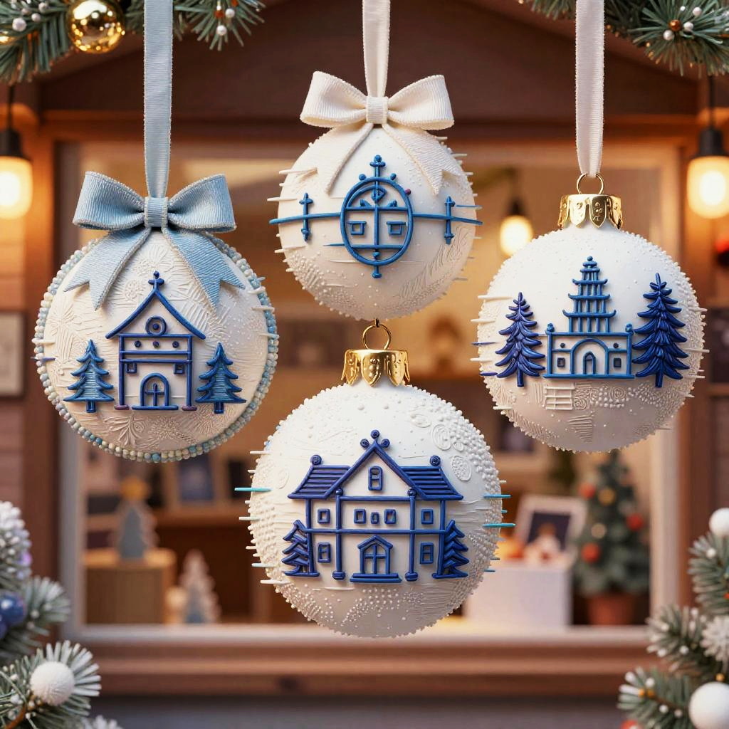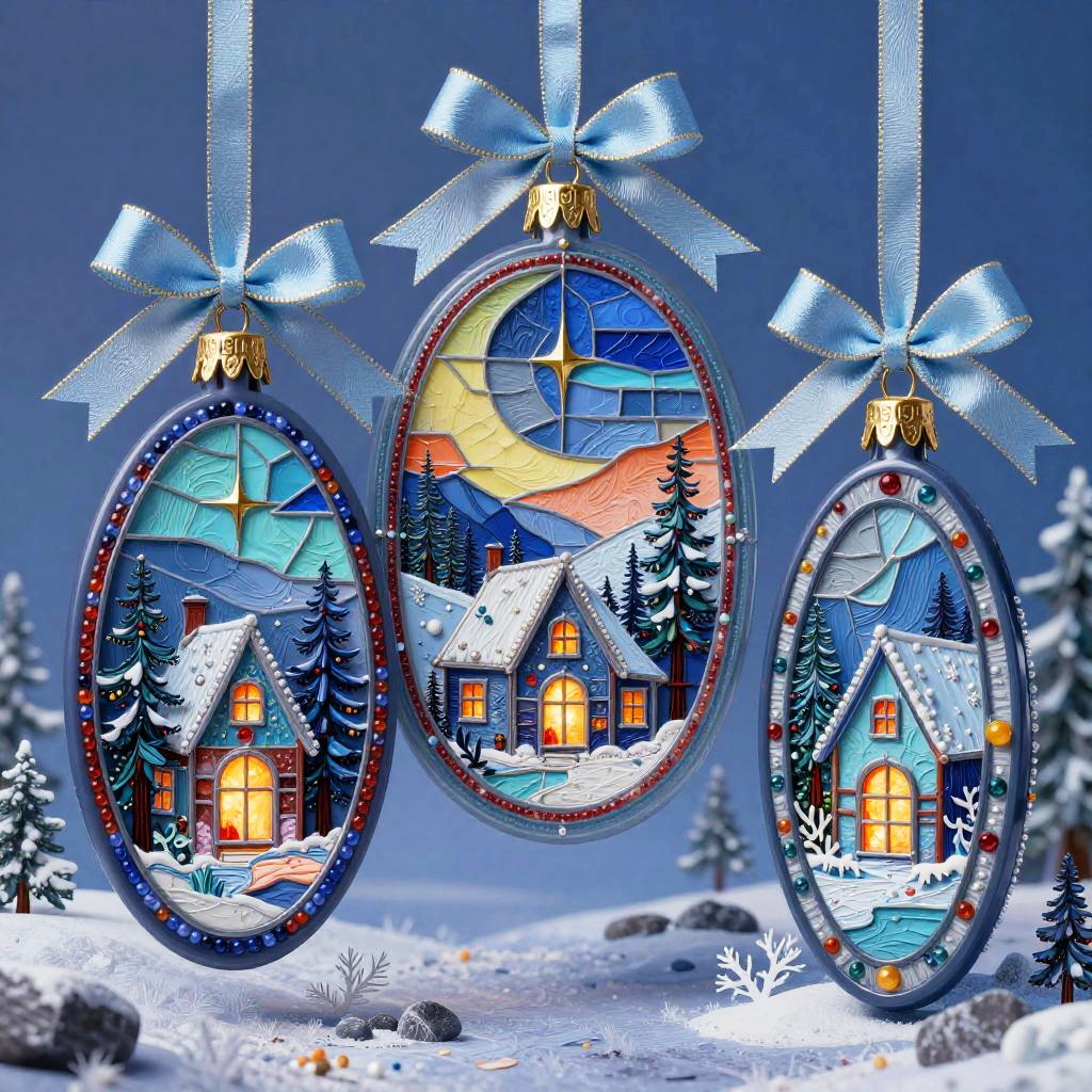 3d soft vivid winter ornaments, pointillism, constructivist glitch art, diorama, Scottish Highlands frost festival, warm lights in the windows, extremely volumetric, silk ribbons embroidery, beadwork, intricately textured, in the style of heavy impasto texture, gorgeous best-ever masterpiece, volumetric, Unreal Engine, Octane, very realistic UHD, 8K octane, 3d, IMAX quality visuals, inspired by Animal Logic