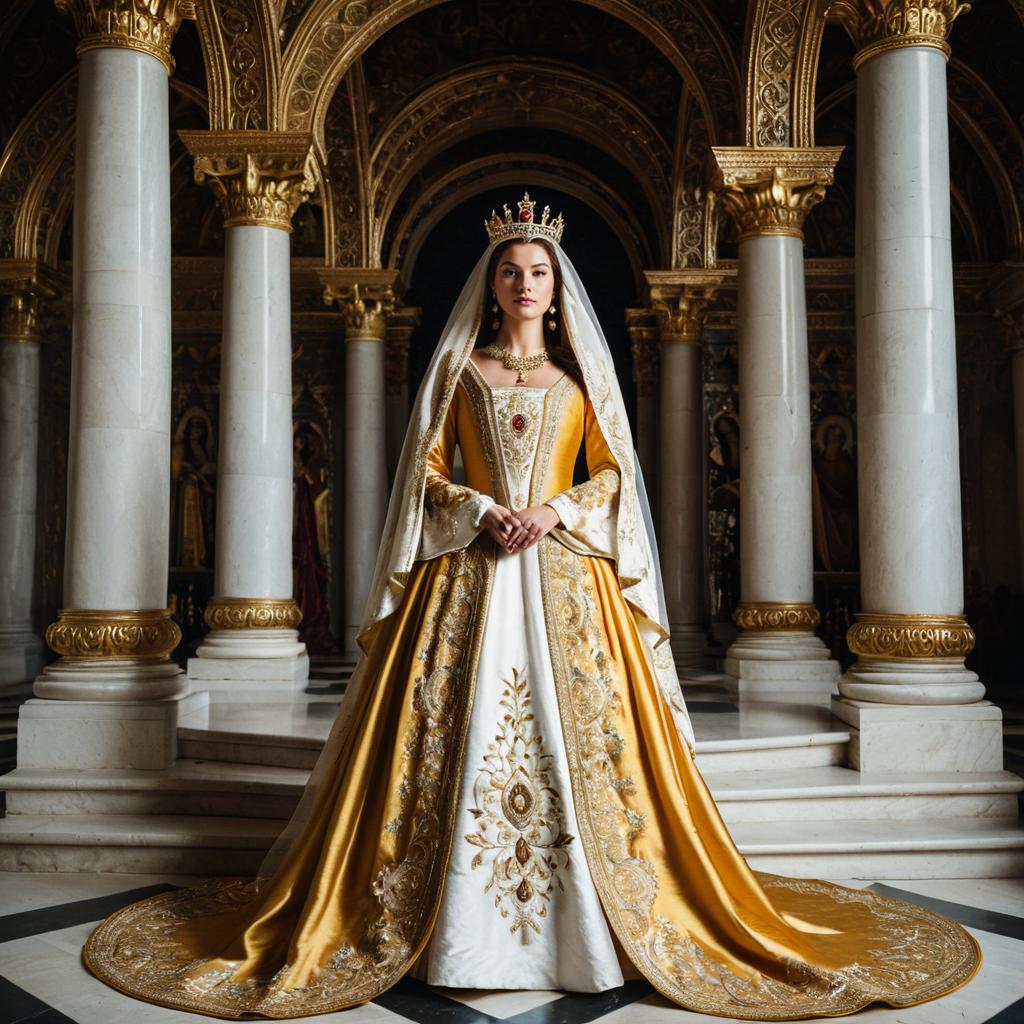 Regal Queen in Ornate Golden Renaissance Gown