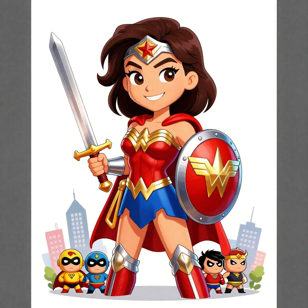 Colorful Cartoon Wonder Woman Hero