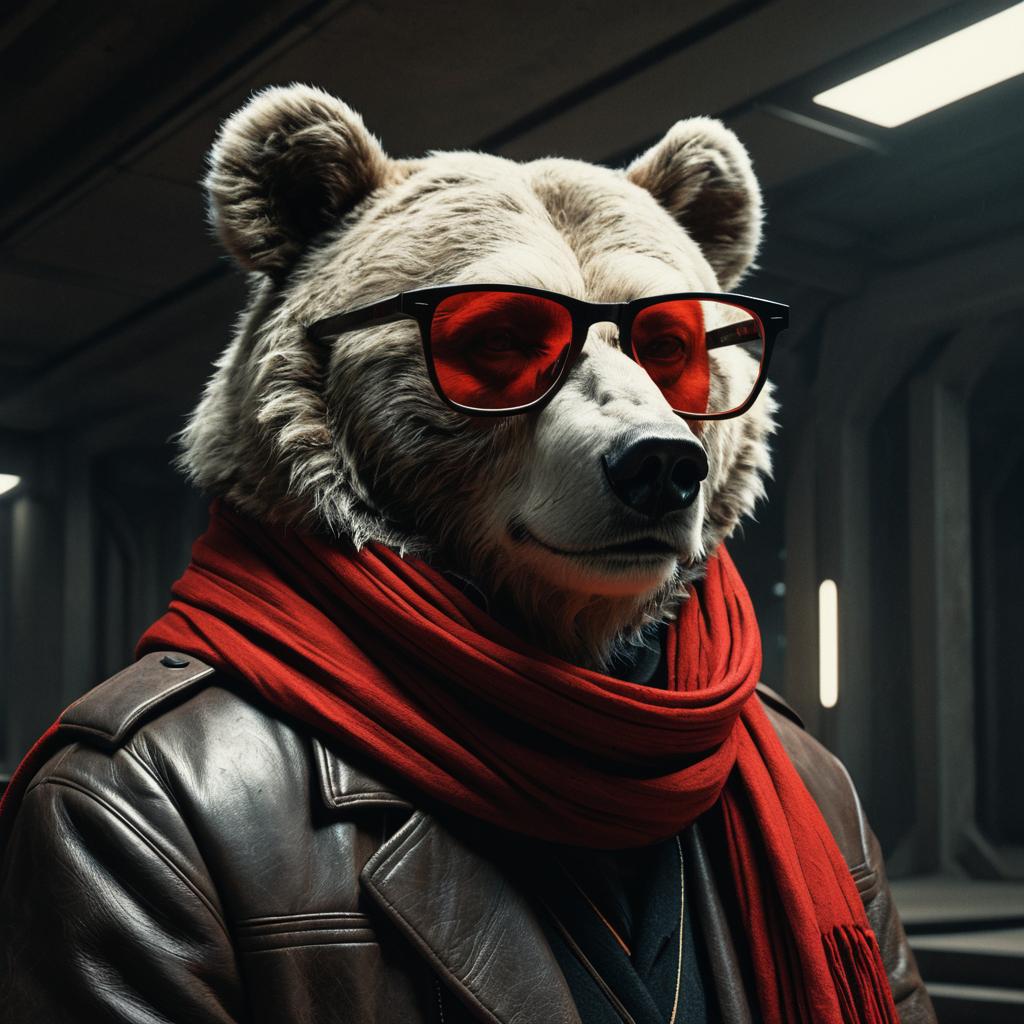 A portrait of a stern fox wearing horn-rimmed glasses and a long red scarf, art nouveau style, backlit, vibrant swirling color lines, gaudy aesthetic, octane render, 8k resolution, by Ilya Kuvshinov, Krenz Cushart, James Gilleard