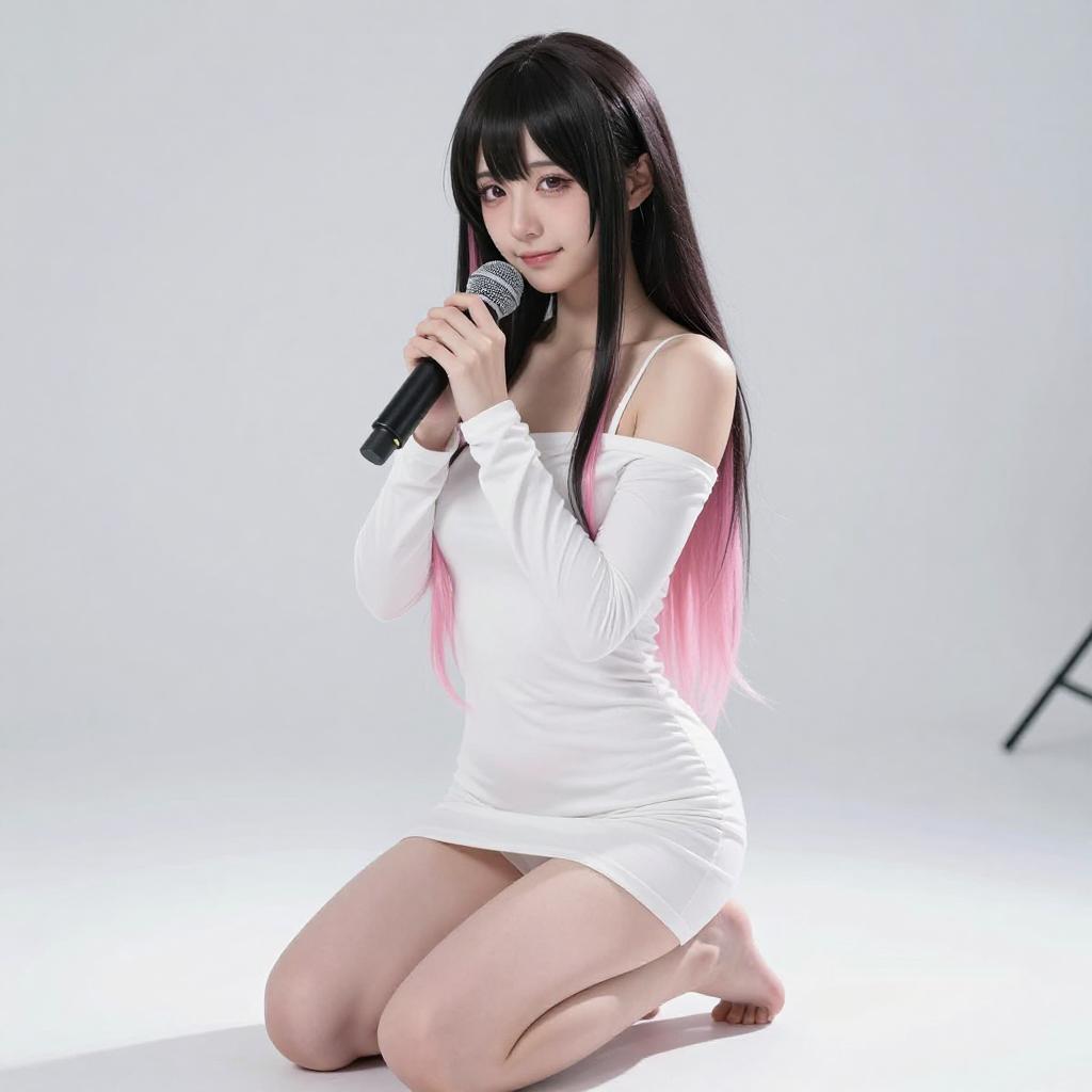 Young Woman Singing with Blue Hair
