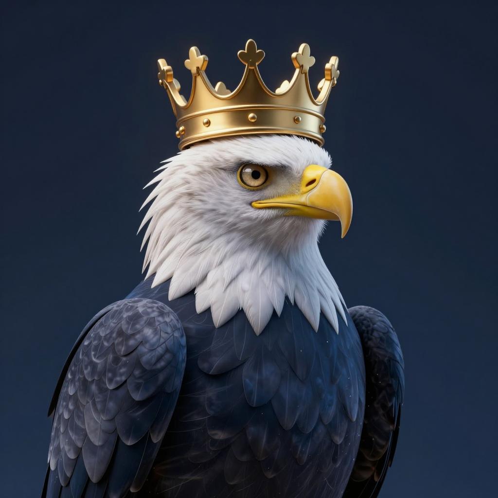Gradient eagle with a crown portrait, deep navy blue gradient, dramatic close-up with Rembrandt lighting, ultra high detail, NVIDIA Iray render, ultra high definition, ArtStation quality, smooth, sharp focus, Photorealism, depth of field, 3D super resolution, octane render, award-winning photo