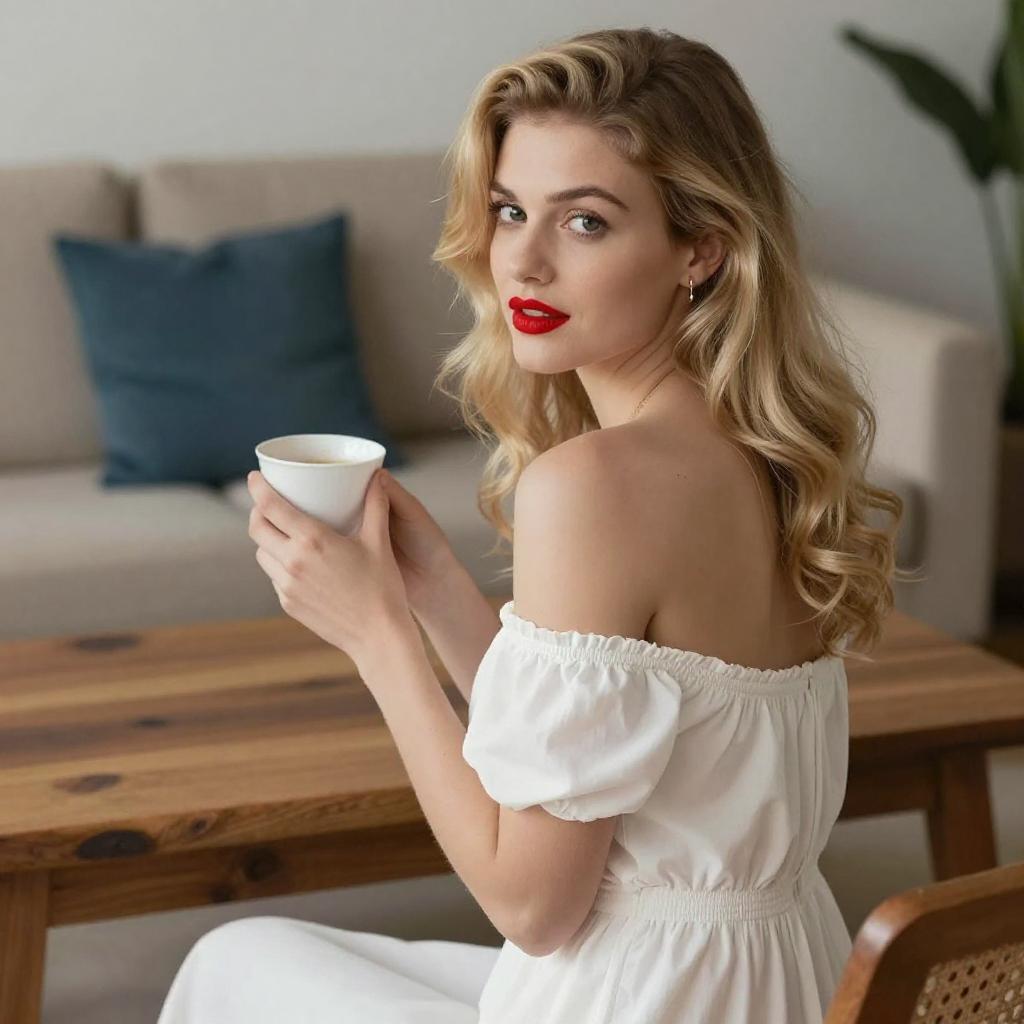 Blonde Woman in Sparkly Dress Squatting